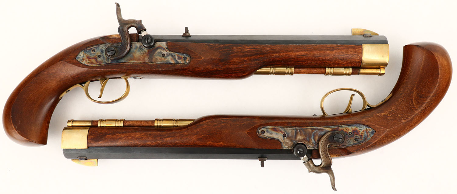 | Set of Dueling Kentucky Percussion Pistols in case by Dikar Spai...