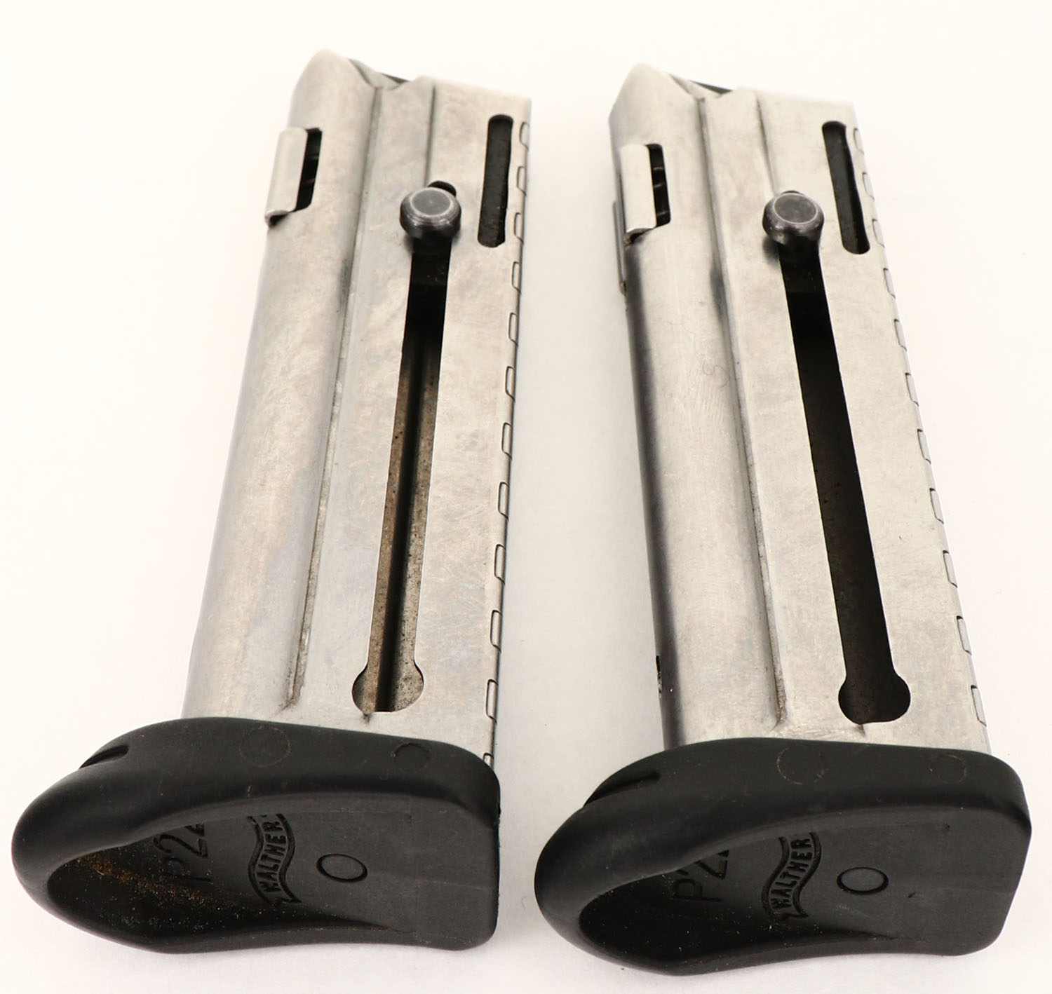 Walther, P22, CAL: 22LR, MFG: Modern, SN: L226326, Semi Auto Pistol, 3 1/2'' barrel. The grooved & textured polymer grip frame is excellent, with minor handling marks. The metal blue finish on the slide has worn or toned to a matte gray tone, with wear at the edges. Bore is excellent. The slide holds a dual white dot rear sight & single white dot blade front sight. Comes with (2) additional mags & Front Line holster. FFL Req. - Value: 150 to 300