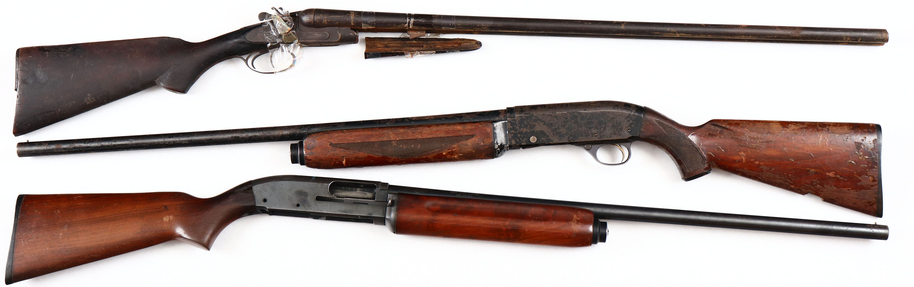 Lot of 3 Parts Guns, J.C. Higgins, Model 60, Cal. 12ga, J.C. Higgins Model 66, Cal. 12ga, & a J. Cooper, Model ??, Cal. 12ga, all are worn the parts missing, fust pitting, Non functioning NO returns on this lot. FFL or C&R Req. - Value: 100 to 500