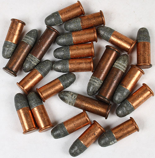 Lot of (22) rimfire rounds. (17) .32 Short''--HS: ''D'' (Dominion). (5) .32 Long--HS: ''U'' (UMC) Grade: Excellent - Value: 20 to 60
