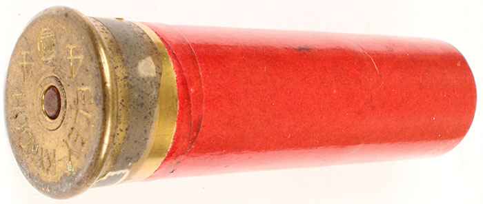 H/S: ELEY KYNOCH No 4, loaded shotshell, red paper case 3 3/4 OAL''. Grade: Excellent ++ - Value: 20 to 100