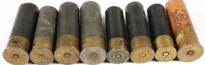 Lot of 8 loaded paper shotshell. Grade: Excellent - Value: 10 to 100
