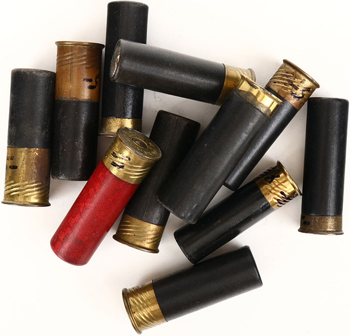 Lot of 11 loaded paper shotshells. Grade: Excellent - Value: 10 to 50