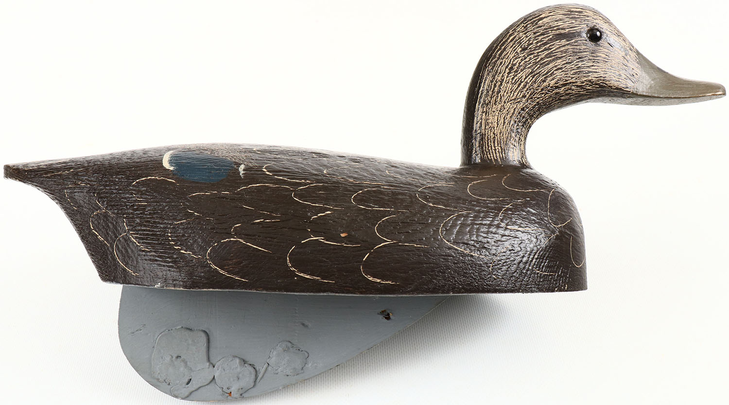 Black Duck by Tom Martindale, glass eyes, solid wood, original paint, has branded TM on bottom. Grade: Excellent + - Value: 40 to 150