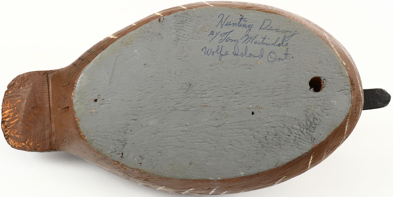 Canvasback Hen by Tom Martindale, Wolf Island Ont. Canada glass eyes, solid wood, structurally excellent, original paint. Grade: Excellent + - Value: 40 to 150