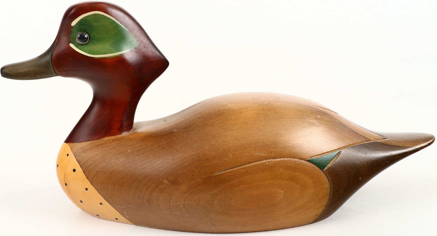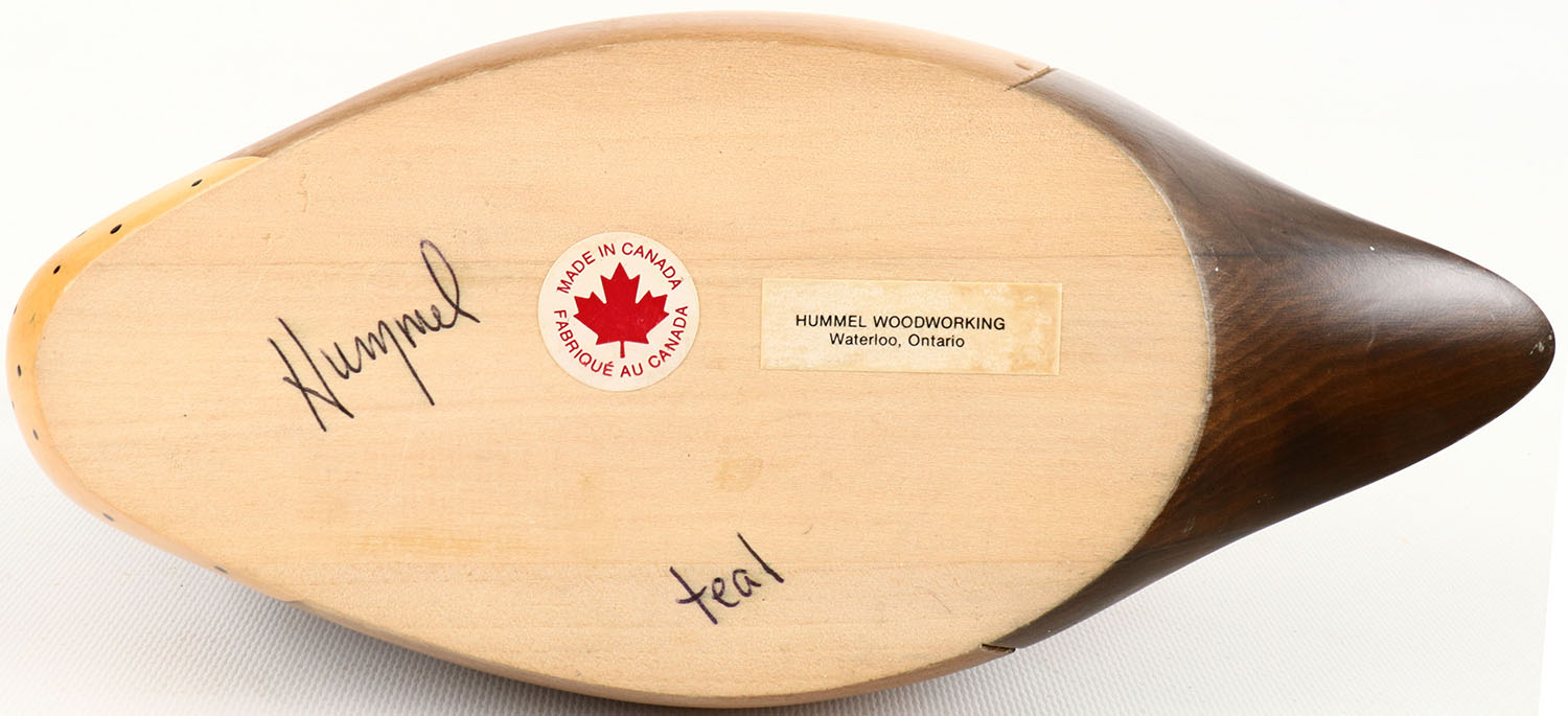 Green-wing Teal Drake by Hummel, made in Waterloo, Ontario, glass eyes, structurally excellent, solid wood, excellent original stains. Grade: MINT - Value: 20 to 100