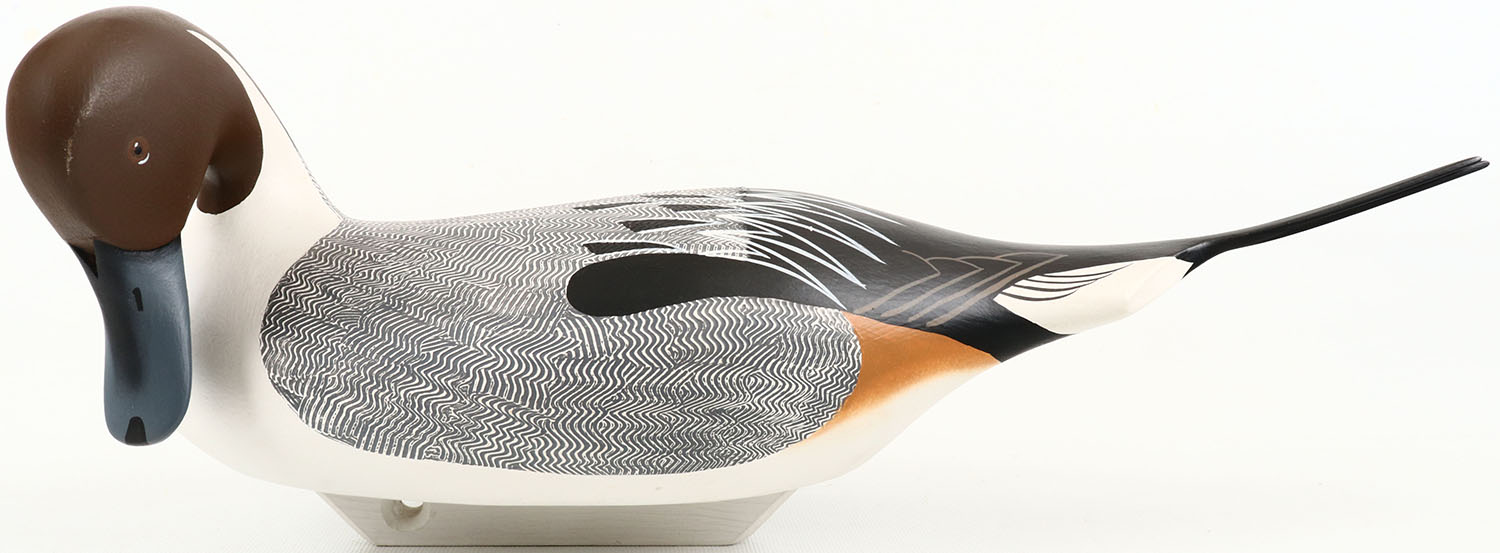 Preening Pintail Drake by Charlie Bryan, Middle River, MD, painted eyes, structurally excellent, solid wood, excellent original comb painting. Grade: Excellent ++ - Value: 40 to 150