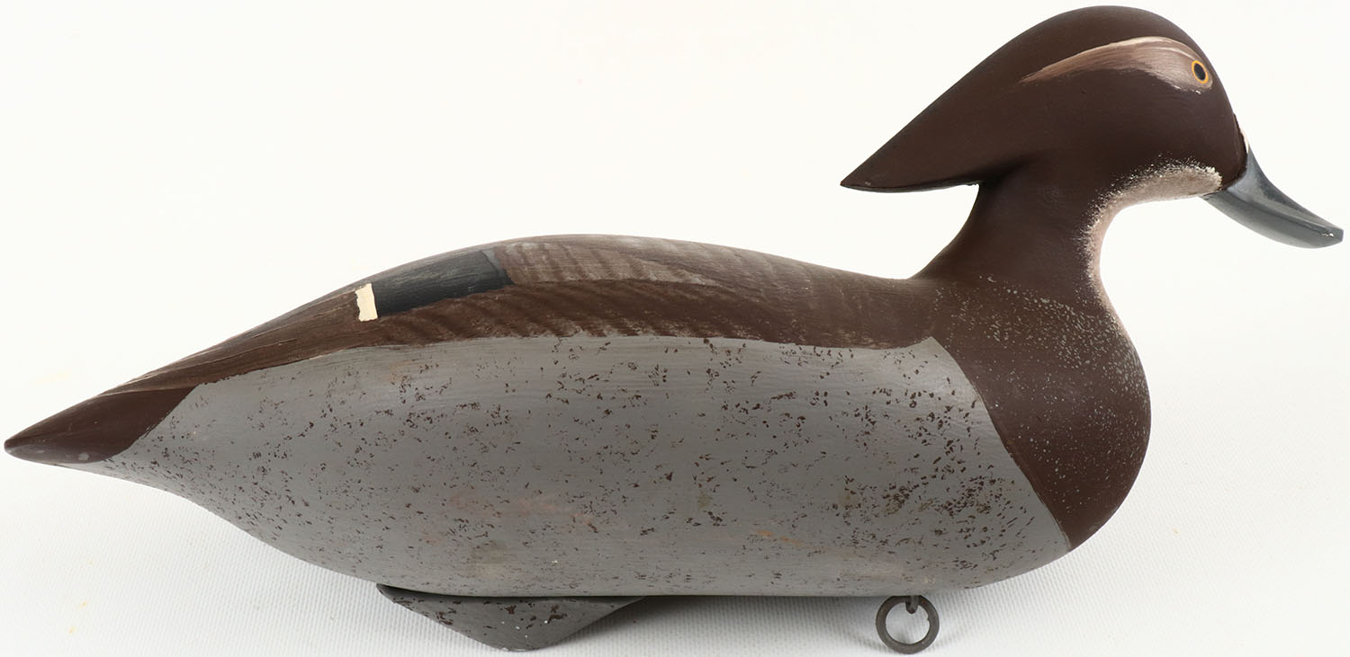 Woodduck Hen by Patrick Vincent, painted eyes, structurally excellent, solid wood, excellent original paint. Grade: Excellent ++ - Value: 40 to 150