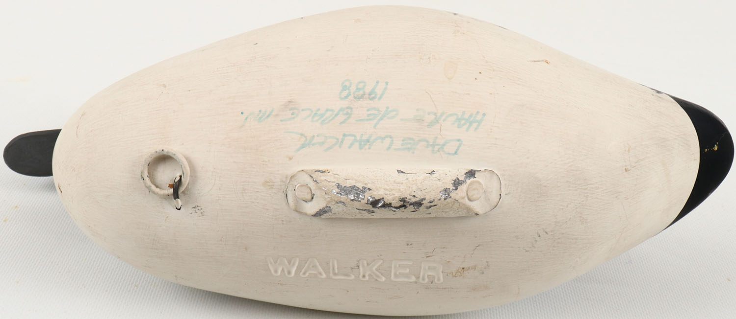 Goldeneye Drake by Dave Walker Havre de Grace, MD, solid wood, painted eyes, mint original paint, structurally excellent, bottom is signed & stamped. Grade: MINT - Value: 40 to 150