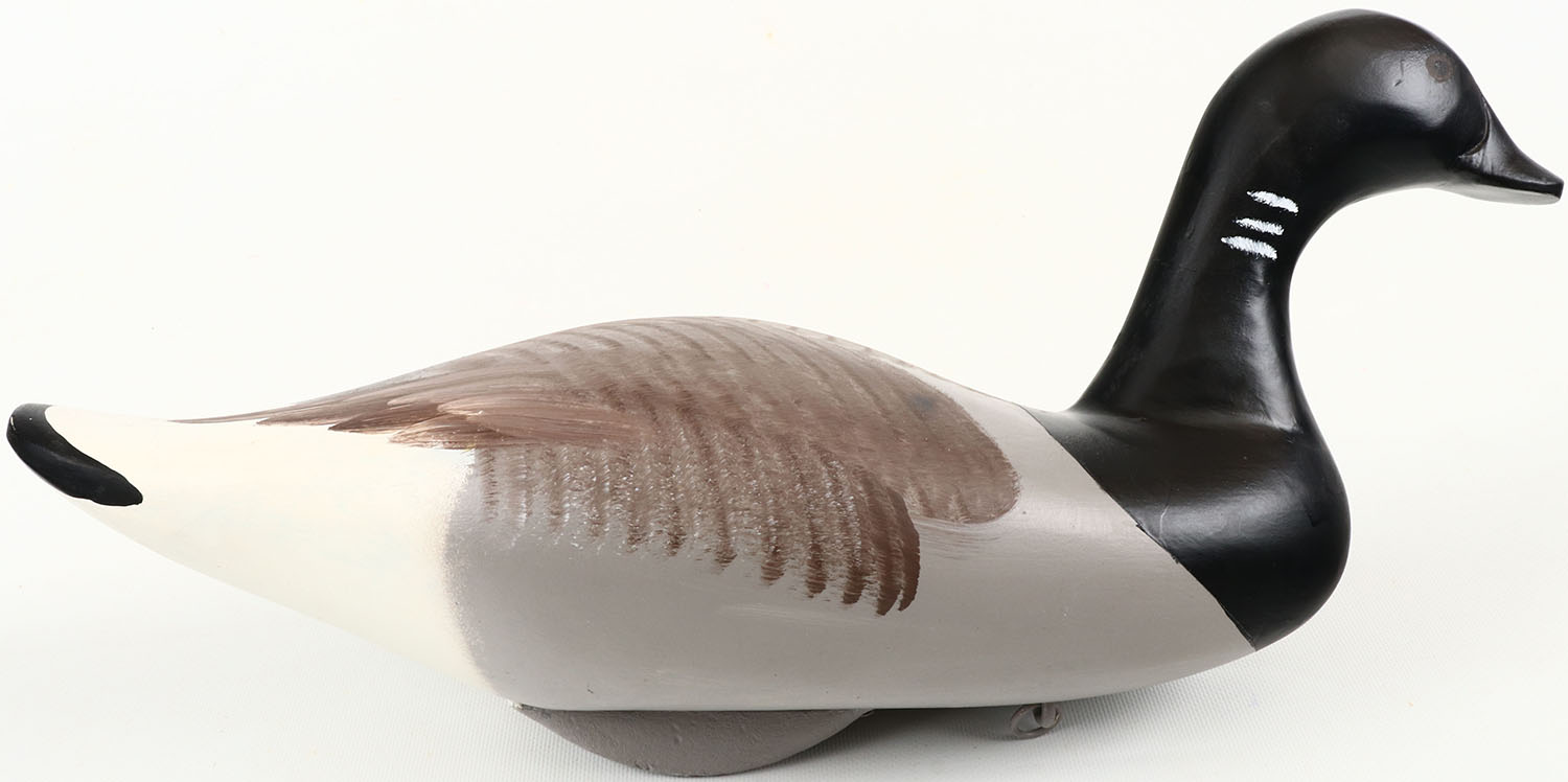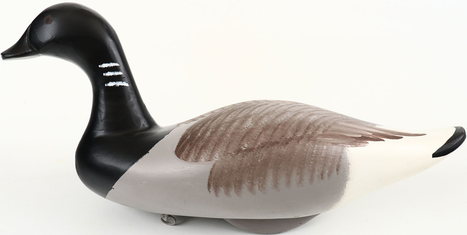 Black Brant by Bob Jobes, Havre de Grace, MD, solid wood, painted eyes, near mint original paint, structurally, bottom is signed. Grade: Excellent ++ - Value: 40 to 150