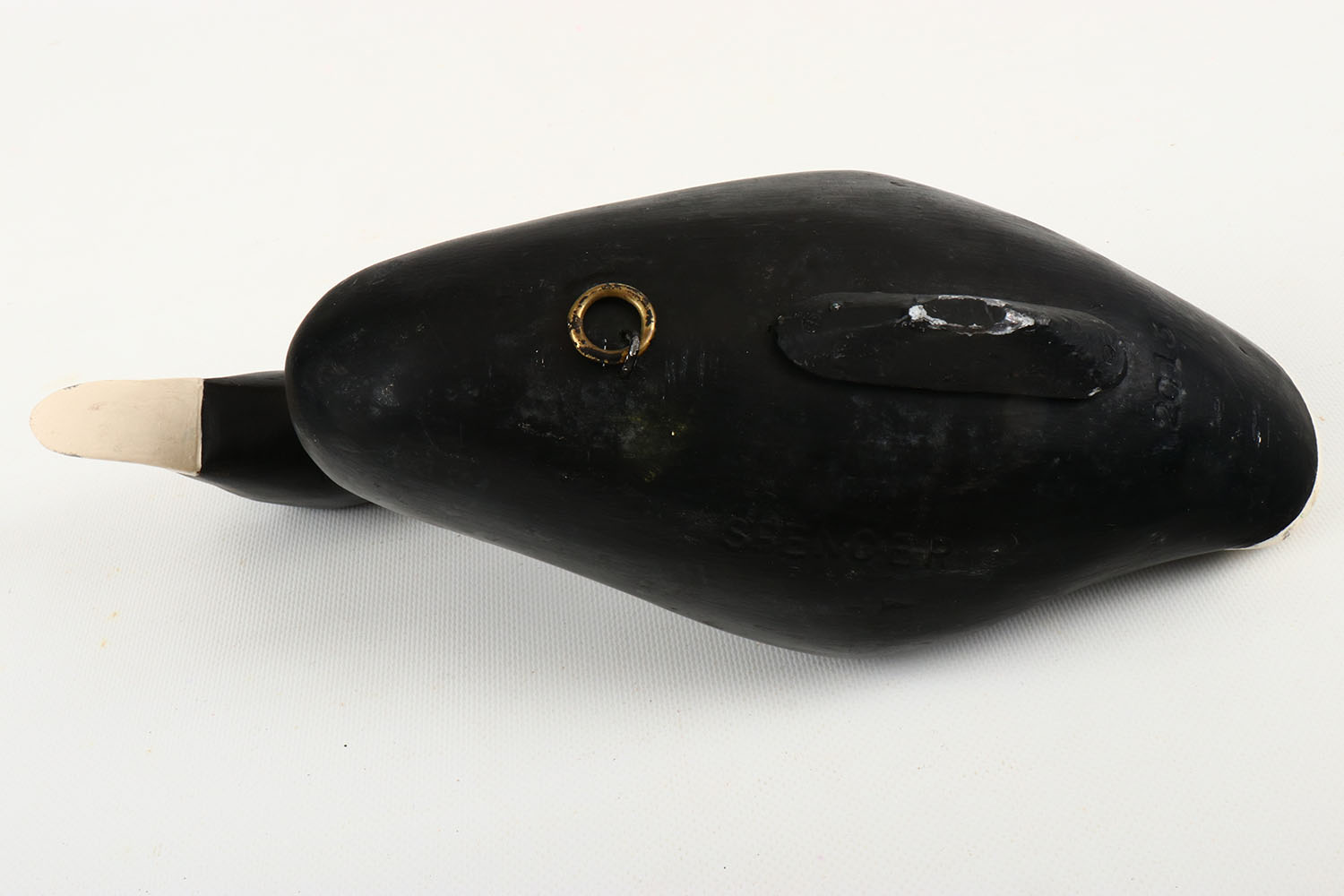 Coot Duck by Spencer, painted eyes, structurally excellent, solid wood, excellent original paint. Grade: Excellent ++ - Value: 40 to 150