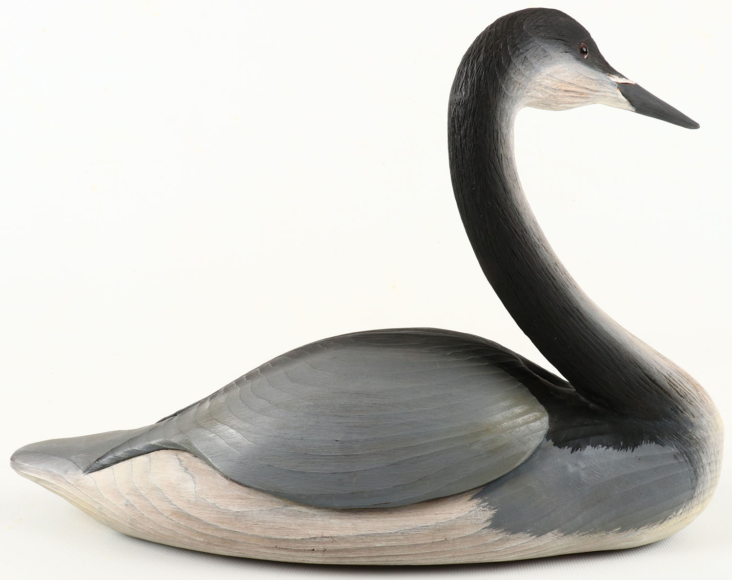 Western Grebe by Walter Oler, Chincoteague, VA, glass eyes, structurally excellent, solid wood, excellent original paint, has