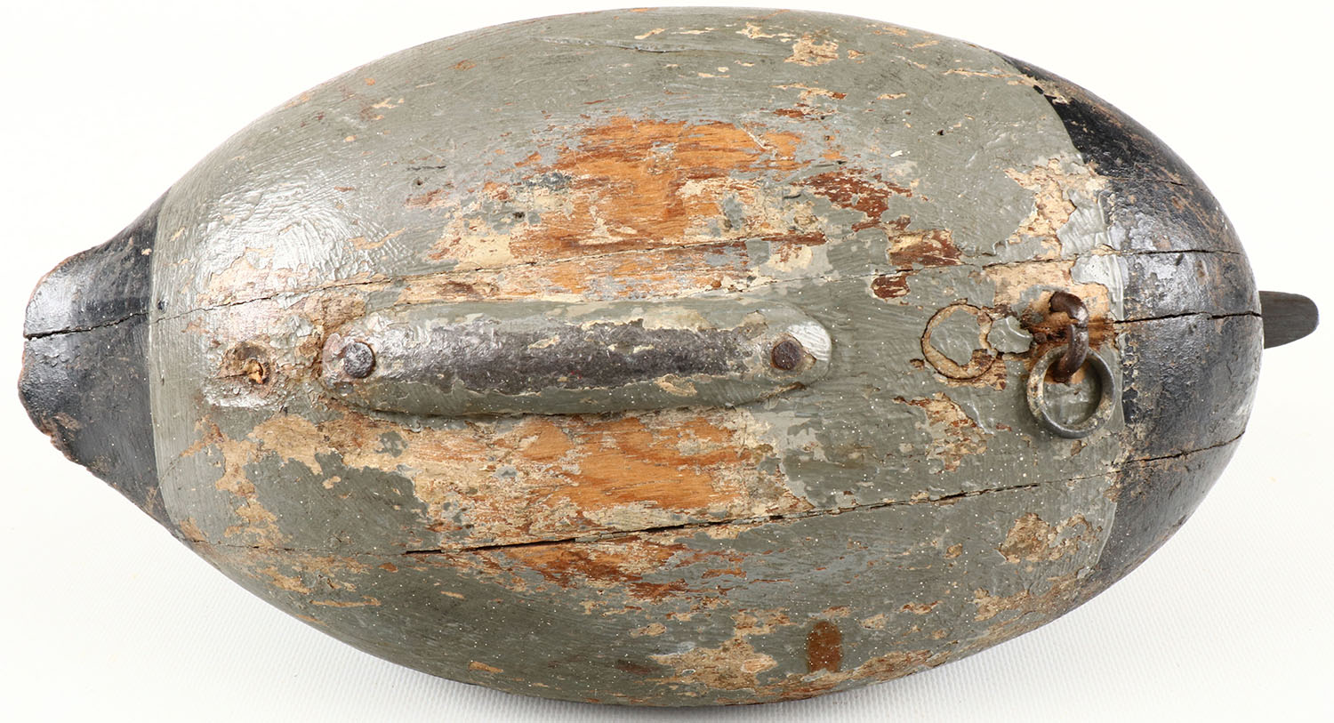 Redhead Drake by unknown maker (Ira Hudson style), carved eyes, structurally excellent, solid wood, neck is slightly loose, has hairline age cracks on bottom, shows edge wear, repainted. Grade: Very Good - Value: 40 to 150