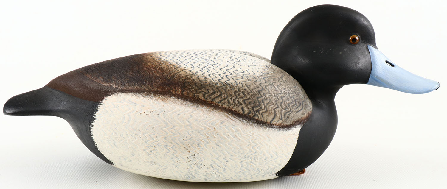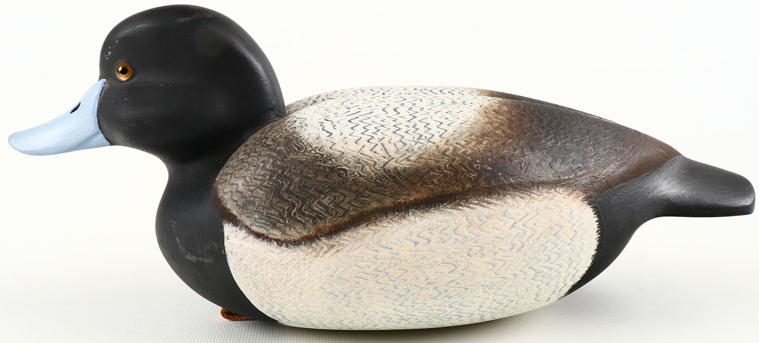 Bluebill Drake by RFA (Robert F A?) (2012), GE, hollow wood, mint original paint, structurally excellent. Grade: Excellent ++ - Value: 40 to 150