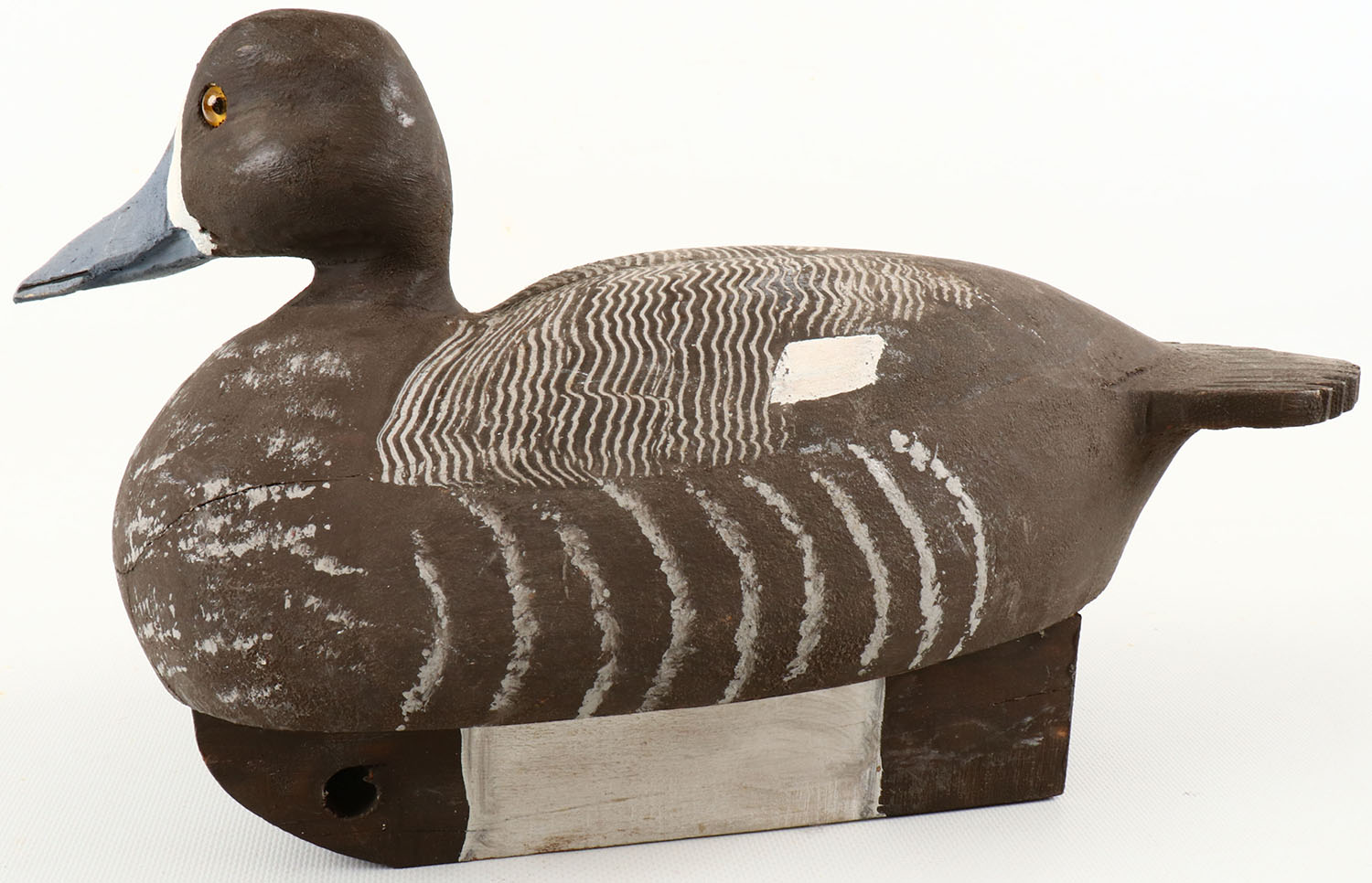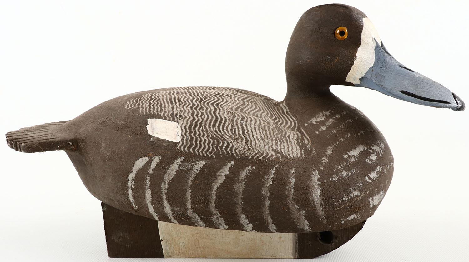 Bluebill Hen by Paul Turnisky (2000), glass eyes, structurally excellent, solid wood, excellent original paint. Grade: Excellent ++ - Value: 40 to 180