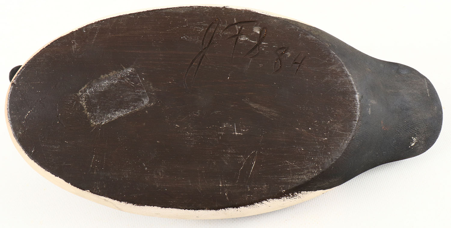 Goldeneye Drake by JFS (1984), glass eyes, structurally excellent, solid wood, excellent original paint, branded on bottom. Grade: Excellent - Value: 40 to 150