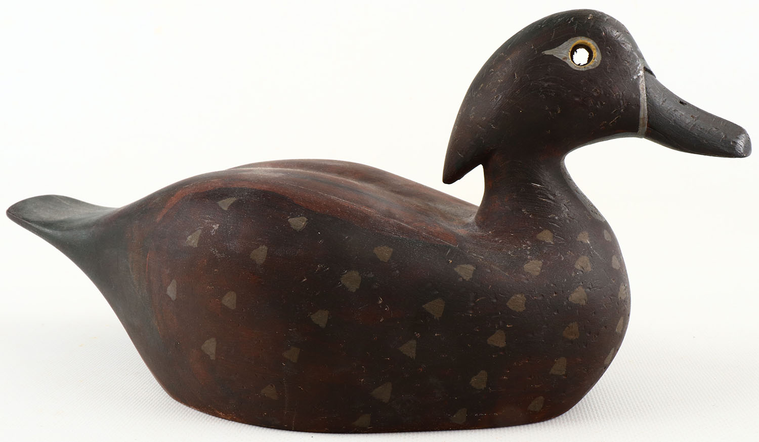 Woodduck Hen by Lester A. Jessup, Burlington, N.C. structurally excellent, solid wood, excellent original paint. Grade: Excellent ++ - Value: 40 to 150