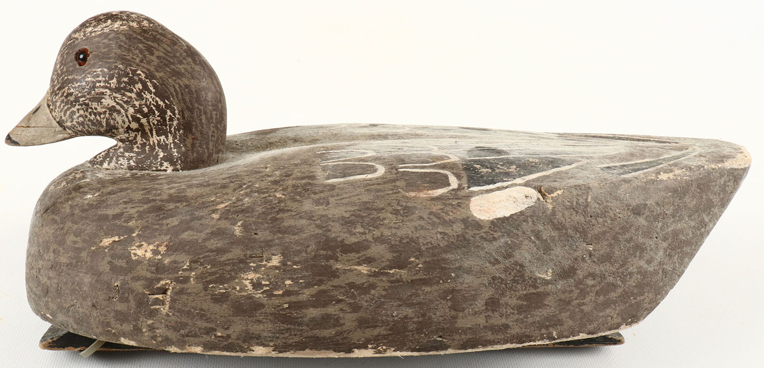 Widgeon Hen by unknown maker, glass eyes, solid balsa wood, bill has been repaired, excellent original paint. Grade: Very Good ++ - Value: 40 to 150