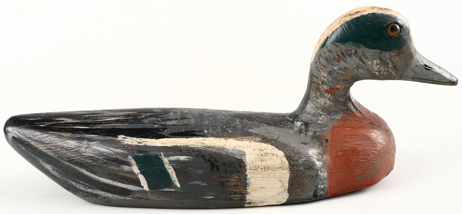 Widgeon Drake by unknown maker, structurally excellent, solid wood, excellent original paint with typical wear. Grade: Excellent - Value: 20 to 100