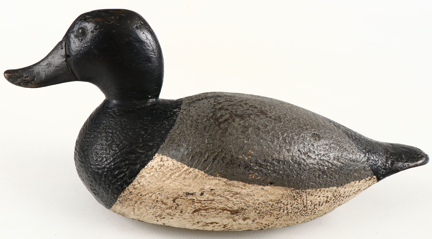Bluebill Drake by unknown maker, tack eyes, structurally excellent, solid wood, excellent original paint. Grade: Excellent - Value: 20 to 100