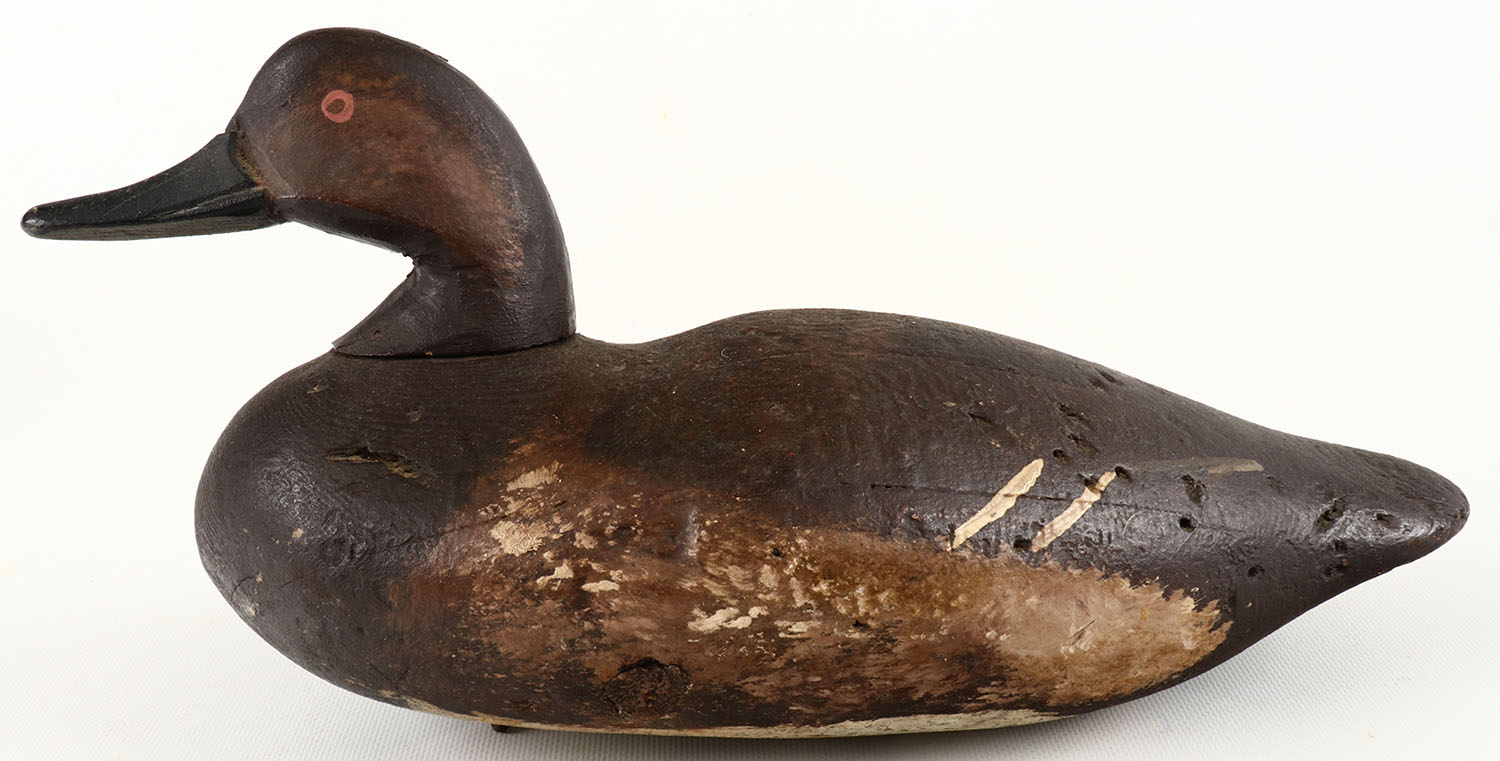 Canvasback Hen by unknown maker, painted eyes, structurally excellent, solid wood, repainted. Grade: Very Good + - Value: 20 to 100
