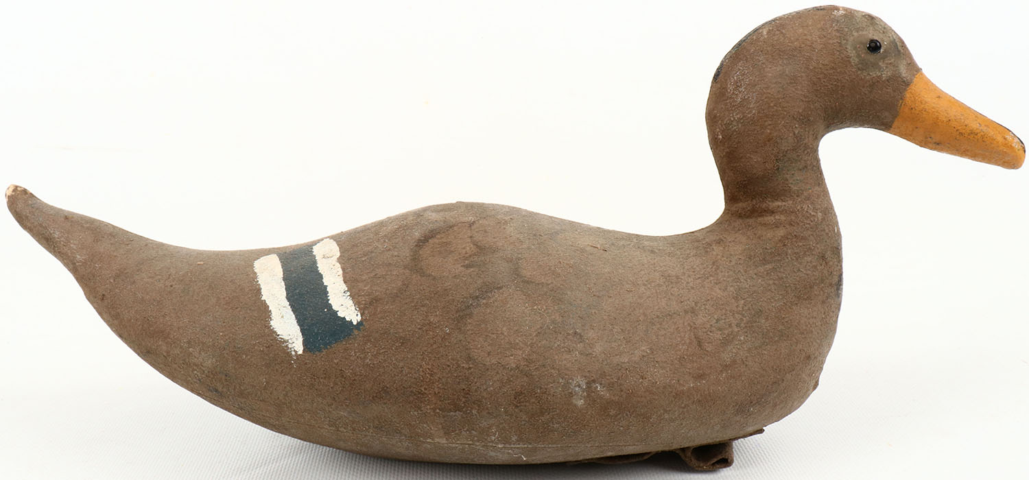 Mallard Hen by Scott Cork Decoy Company, CA, canvas over cork, tack eyes, original paint with typical wear. Grade: Excellent - Value: 40 to 150