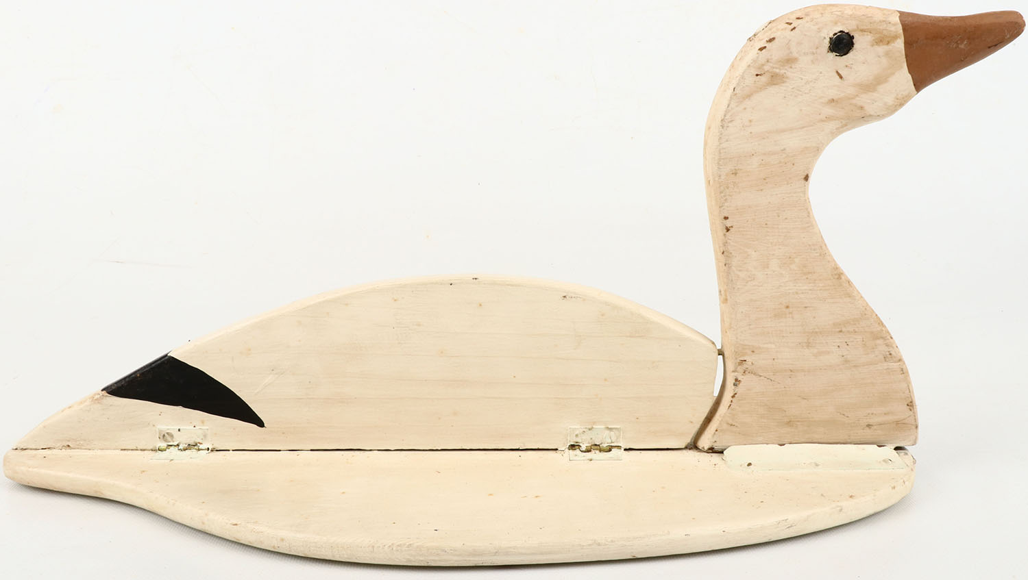 Snow Goose by unknown maker, WA, collapsible decoy, tack eyes, excellent original paint with typical wear. Grade: Excellent - Value: 30 to 60