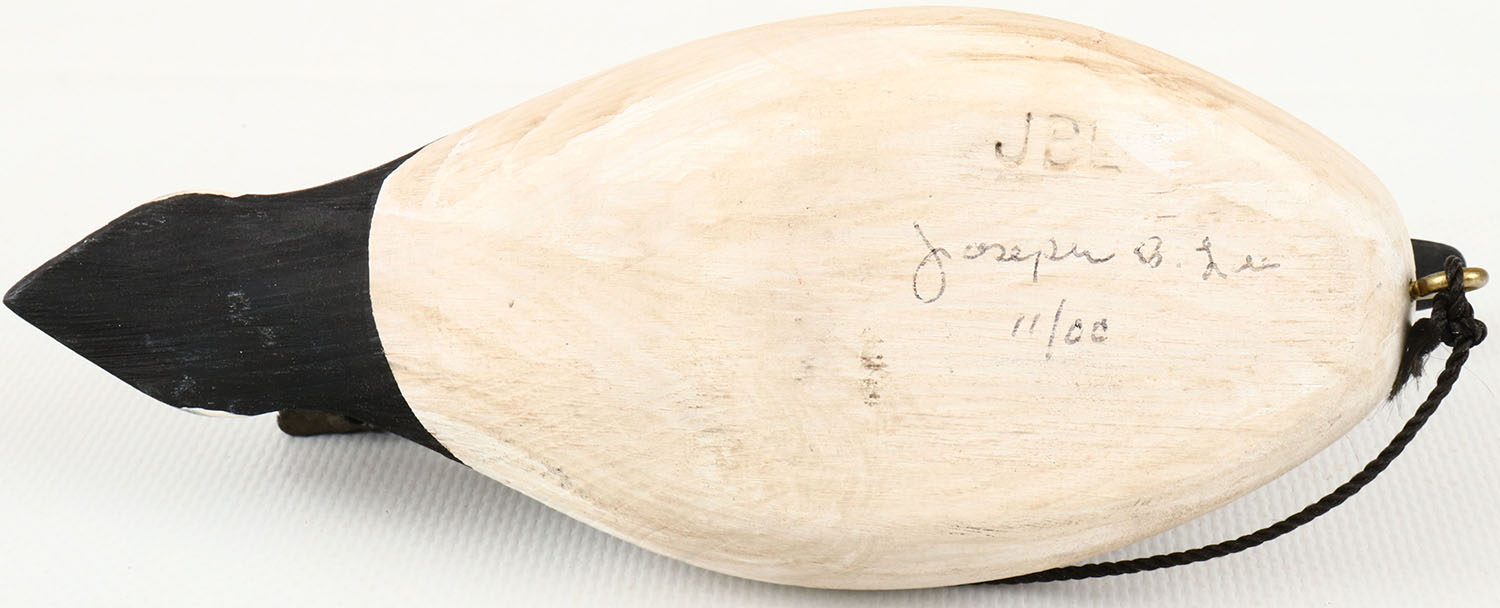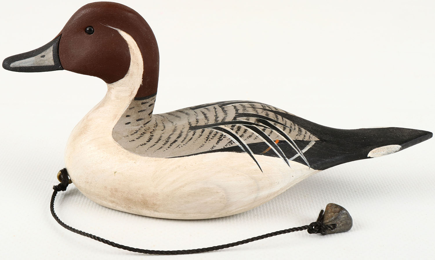 Miniature Pintail Drake by Joseph B. LE., glass eyes, structurally excellent, solid wood, excellent original paint, branded JBL on bottom. Grade: MINT - Value: 10 to 30