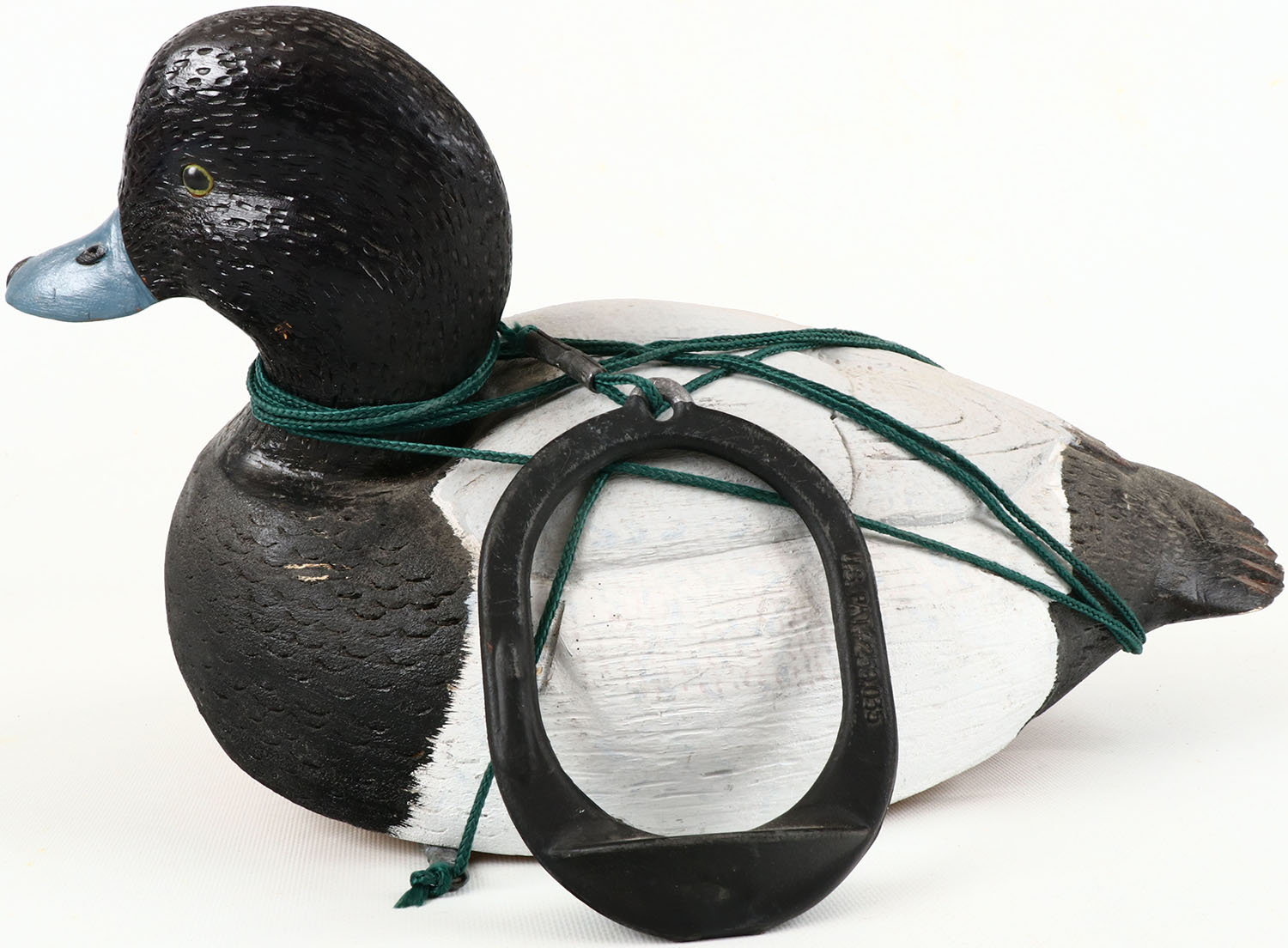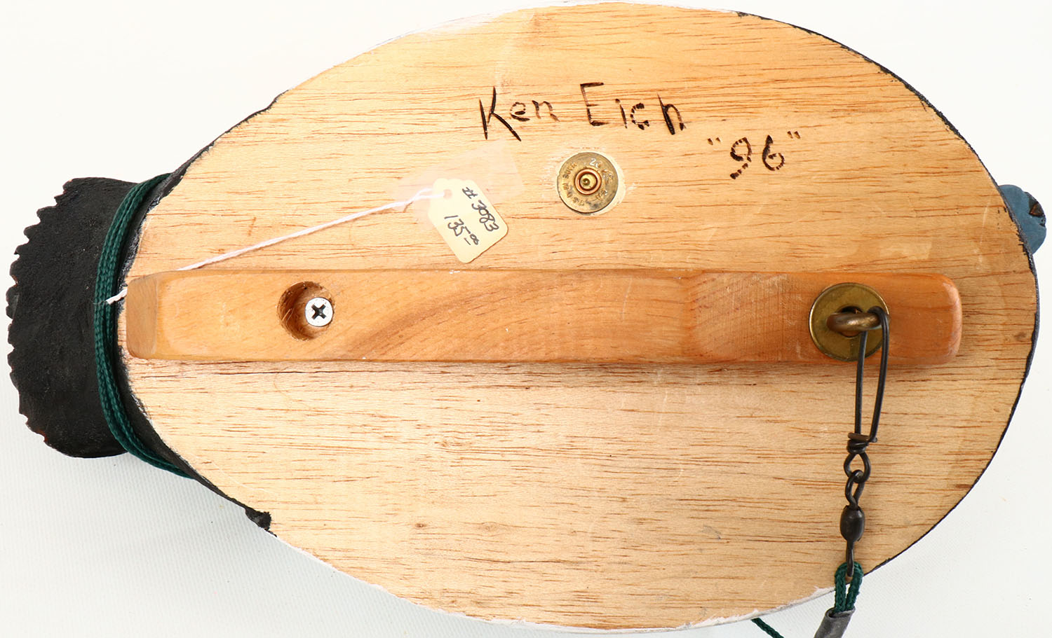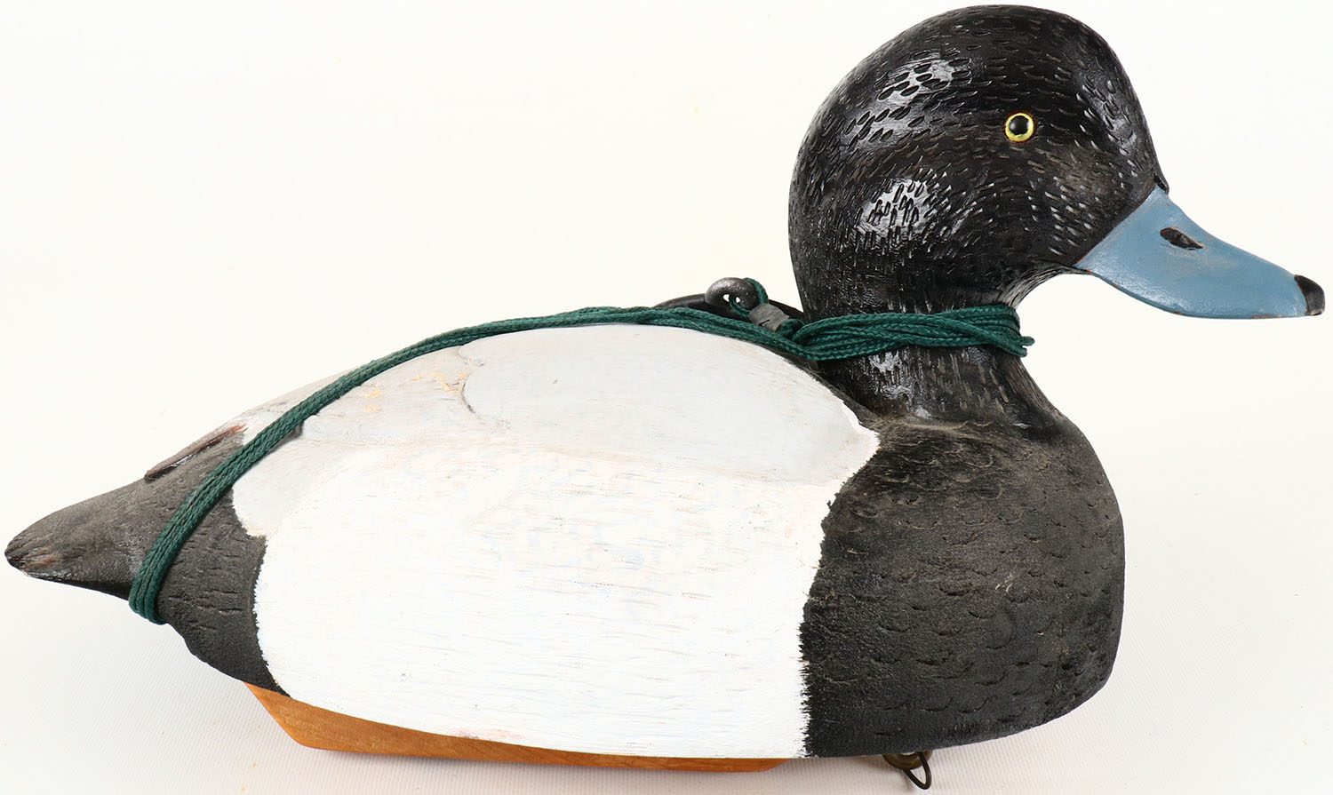 Bluebill Drake by Ken Eich, glass eyes, structurally excellent, solid wood, excellent original paint, has weight on bottom. Grade: MINT - Value: 30 to 60