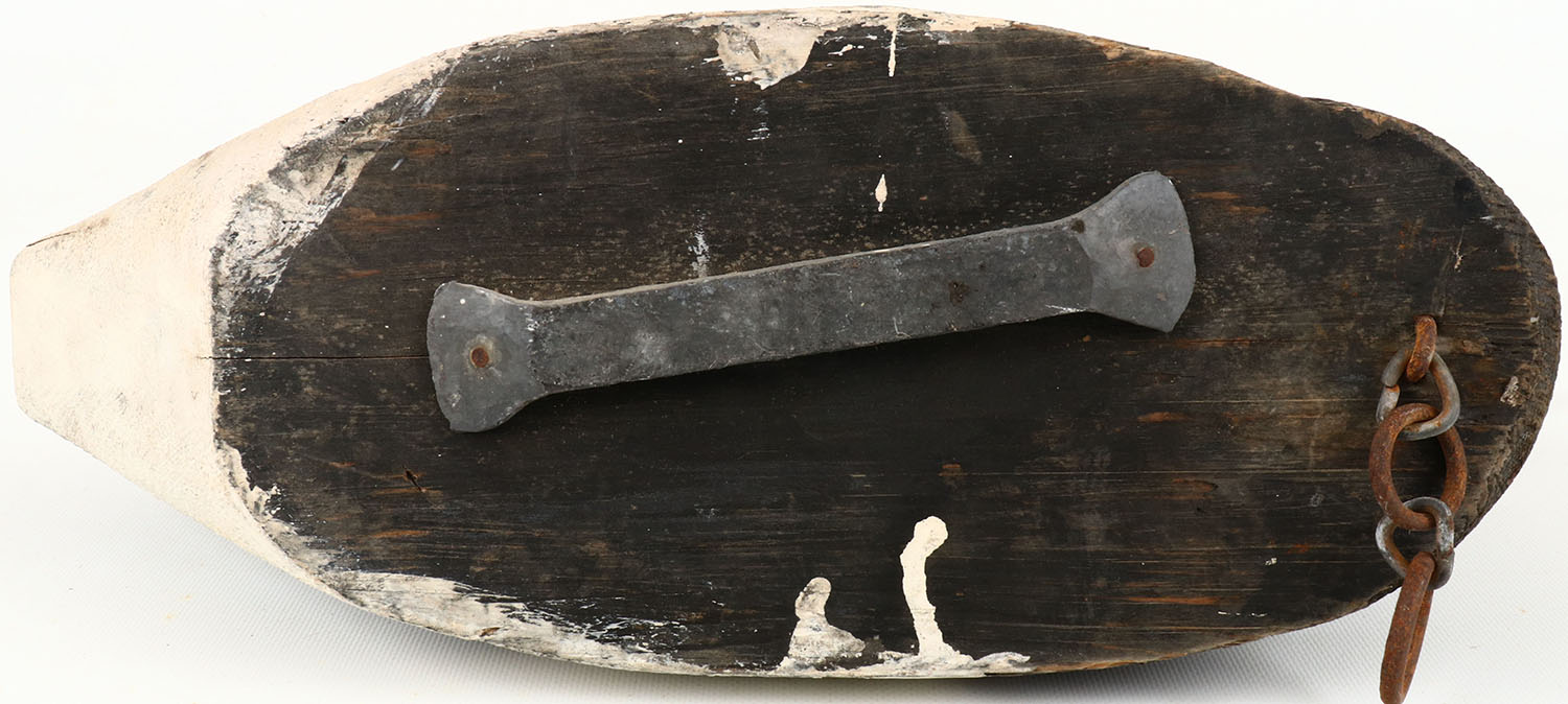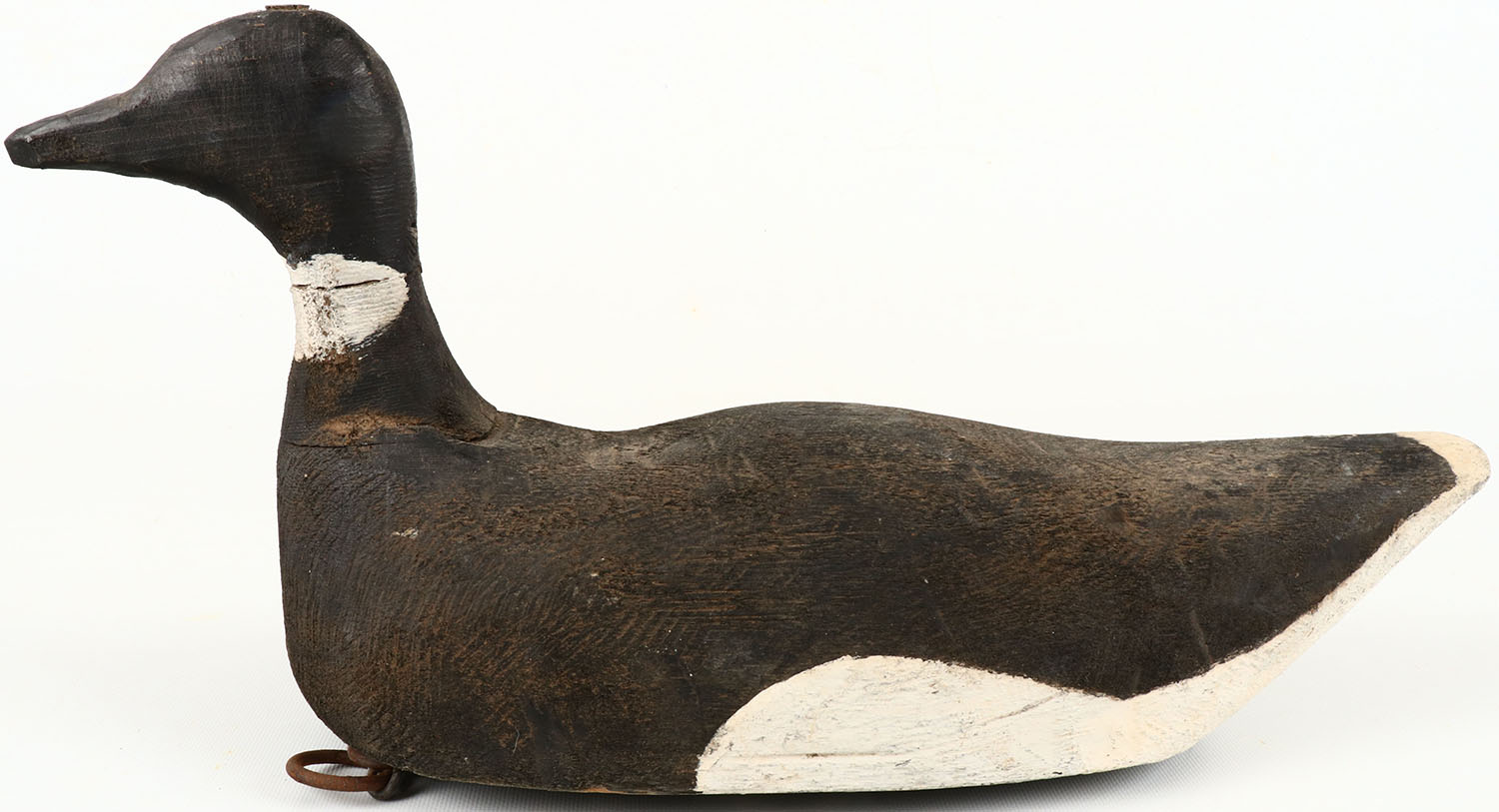 Brant from Samish Island/Skagit Valley, WA, a rig of these were brought to the WA Brant Foundation Show at the Farmhouse Inn around 2010 and sold off the back of a tailgate, no eyes, solid wood, original paint with typical wear. Grade: Very Good ++ - Value: 50 to 100