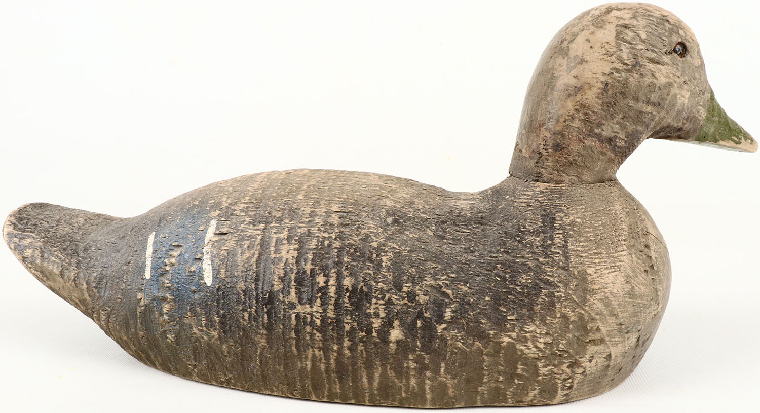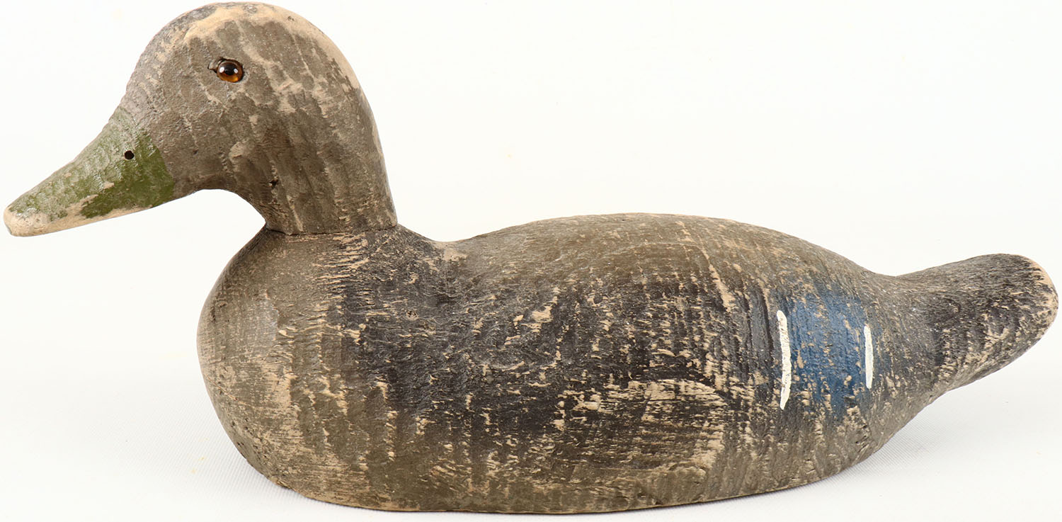 Mallard Hen by Animal Trap Co. Pascagoula Miss. stamped on bottom, GE, solid wood, original paint shows wear to edges, structurally excellent. Grade: Very Good + - Value: 20 to 60