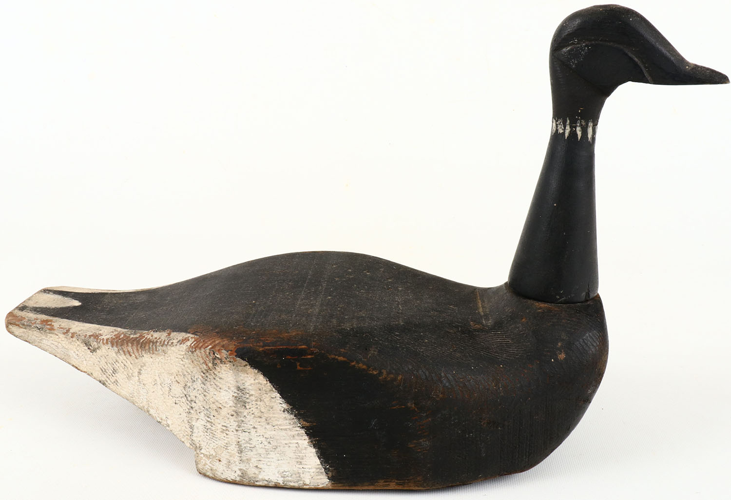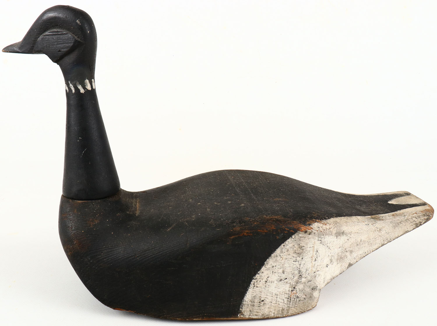 Black Brant appears to be Delta, BC, no eyes, solid wood, nice original paint with some edge wear, head is removable on wood dowel, structurally excellent. Grade: Excellent - Value: 50 to 100