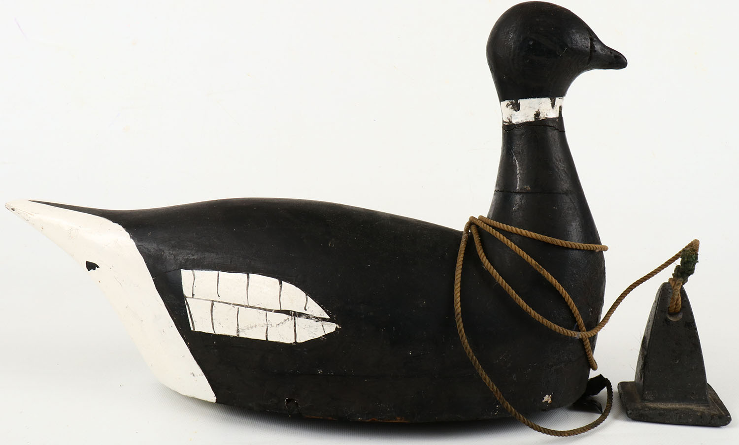 Large Black Brant by Art Forster, B.C, no eyes, solid wood, has original paint, structurally excellent, has large decoy anchor. Grade: Excellent - Value: 150 to 300