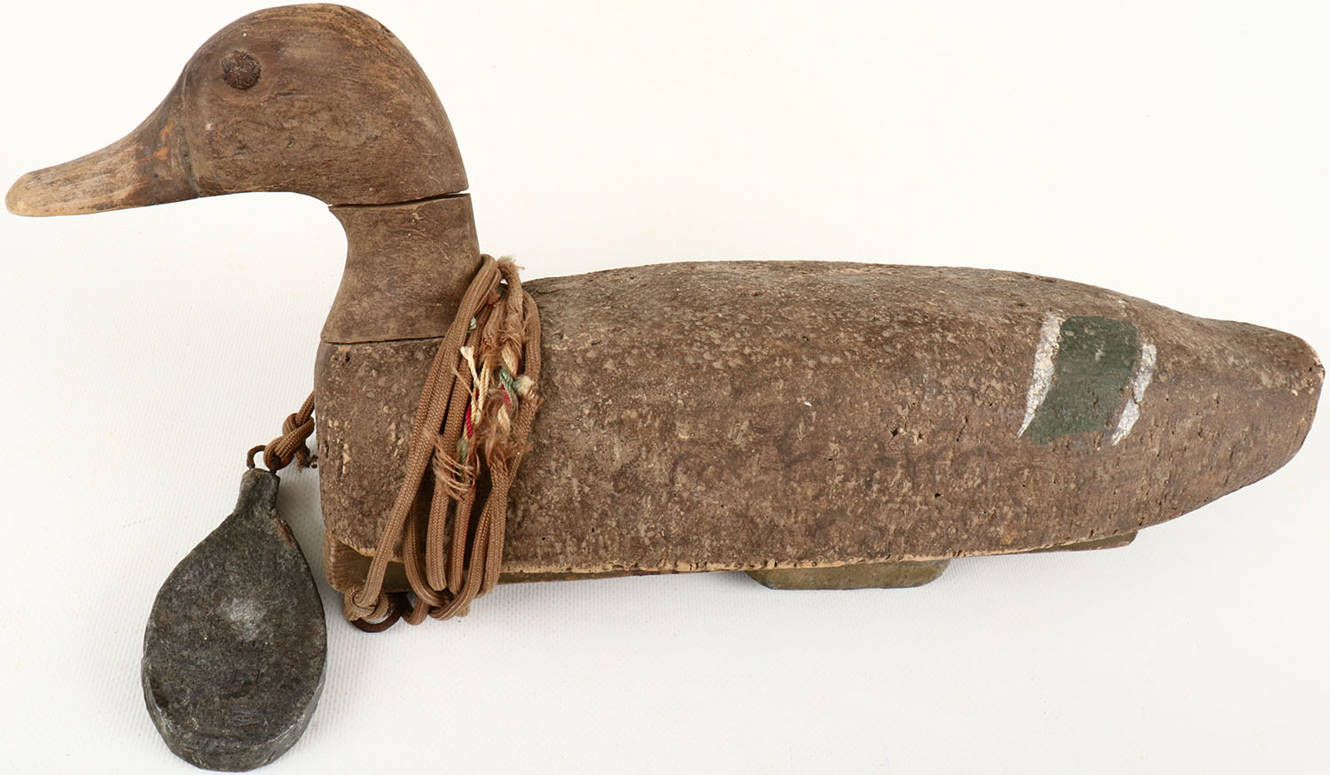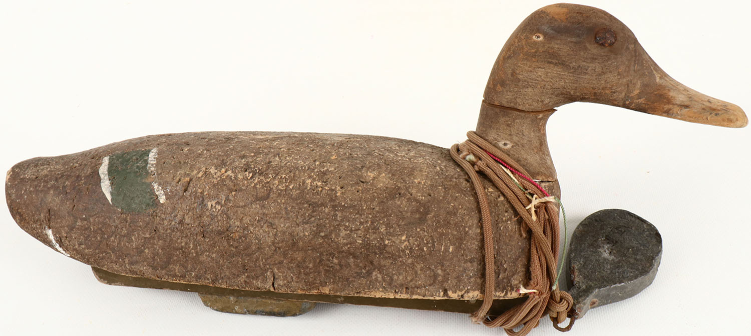 Mallard Hen by unknown, branded ''LACHLAN'', TE, solid cork, head has a neck crack, original paint. Grade: Very Good - Value: 30 to 50