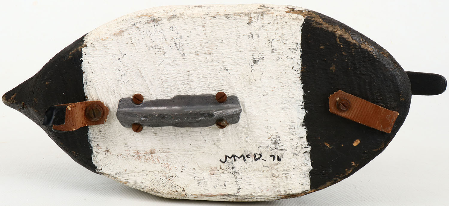 Canvasback Drake by unknown, PE, solid wood with cork back, original paint, hair line crack to neck, chip to bill. Grade: Very Good ++ - Value: 30 to 60