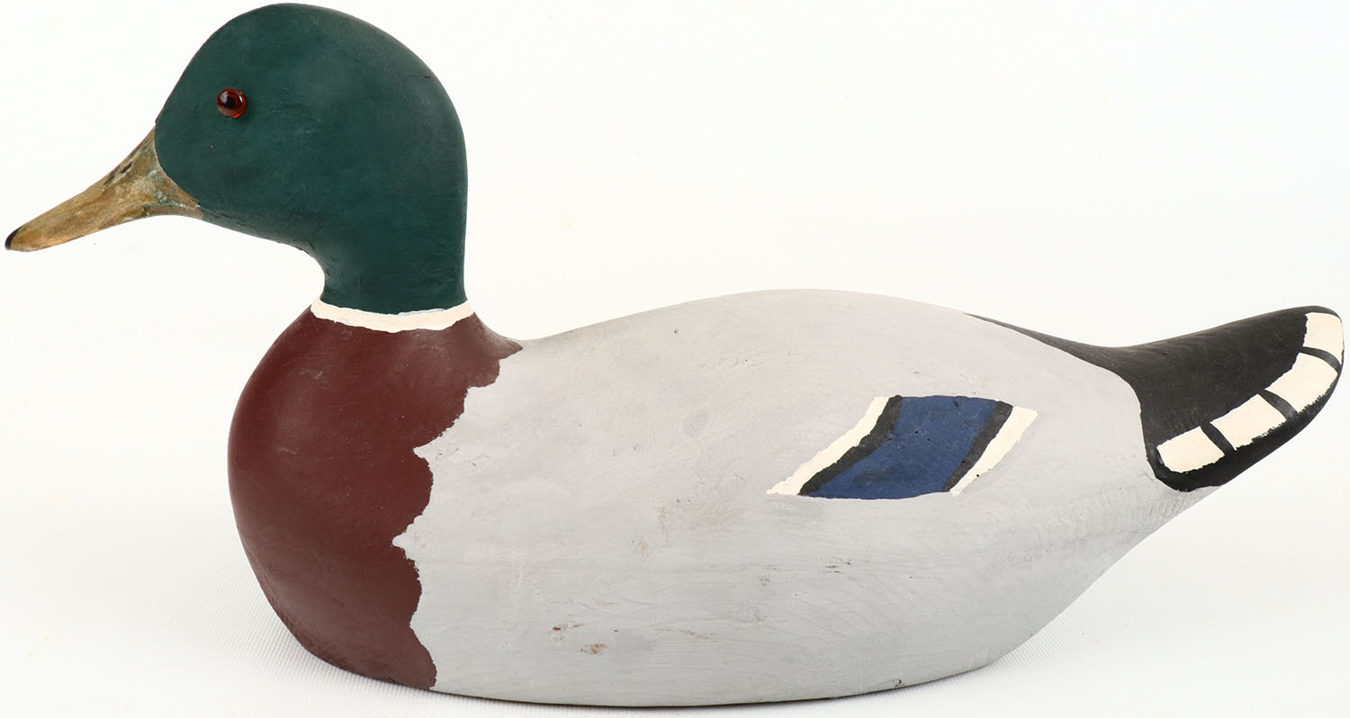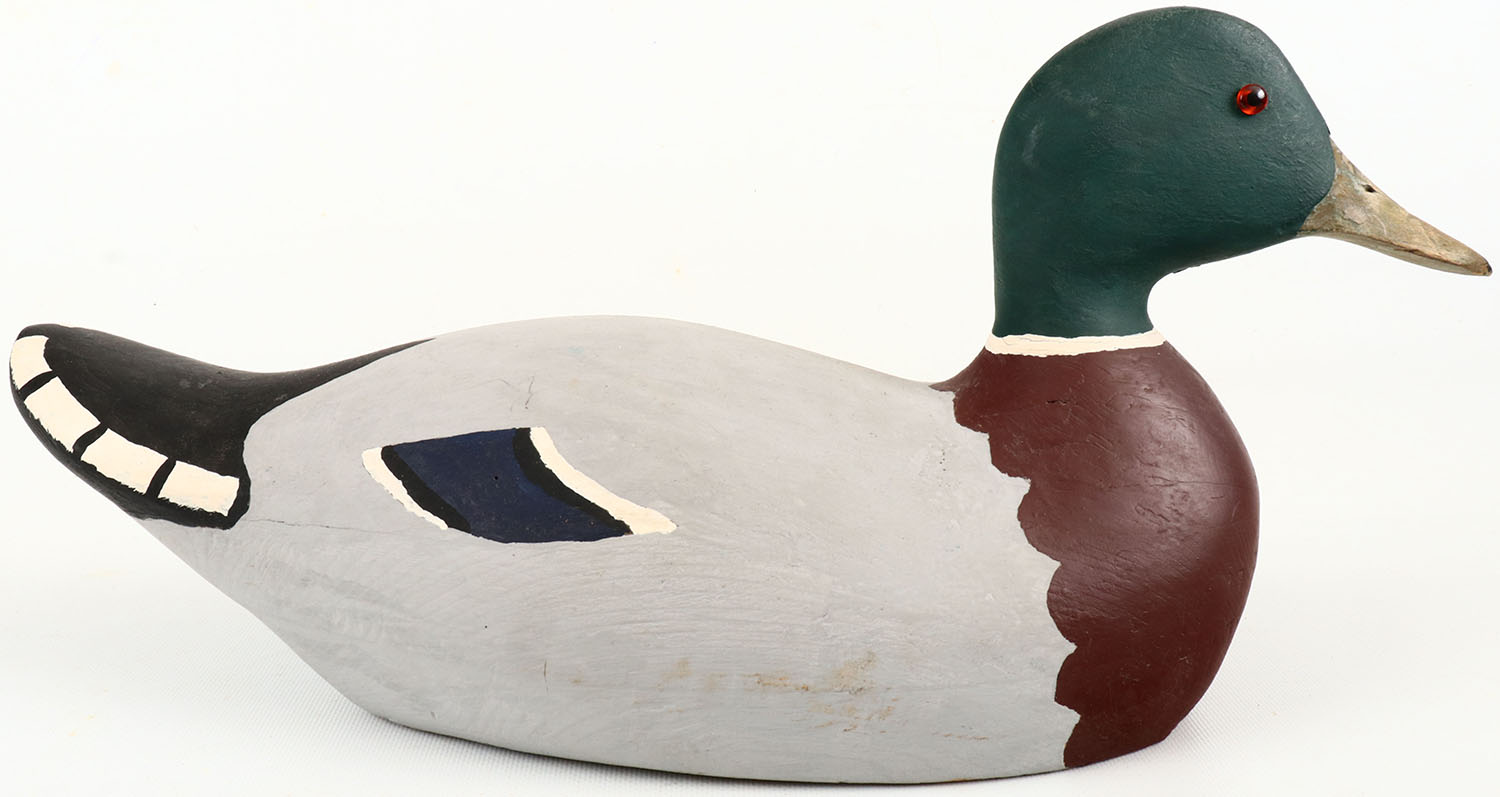 Mallard Drake by unknown maker, glass eyes, solid wood, excellent original paint. Grade: Excellent + - Value: 10 to 50