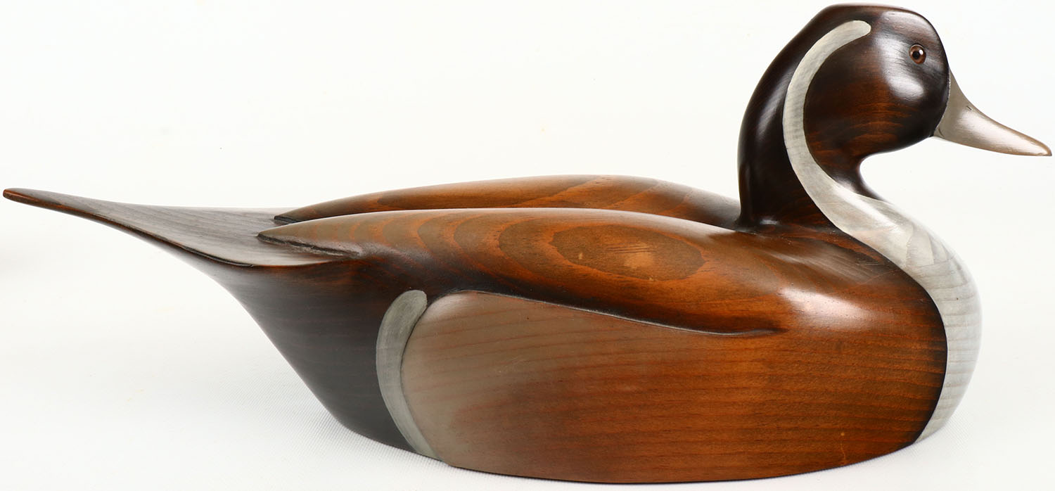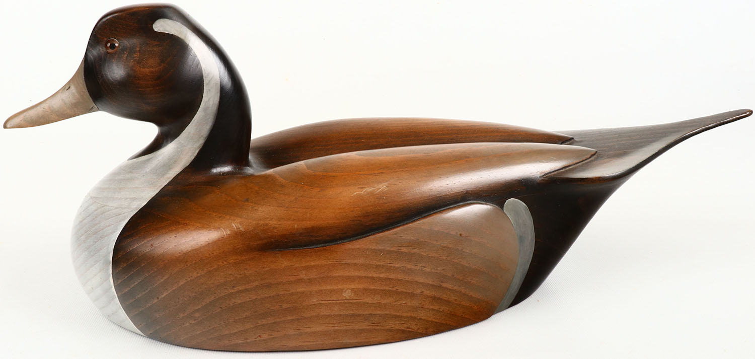 Pintail Drake by unknown maker, glass eyes, structurally excellent, solid wood, mint original stain. Grade: MINT - Value: 20 to 50