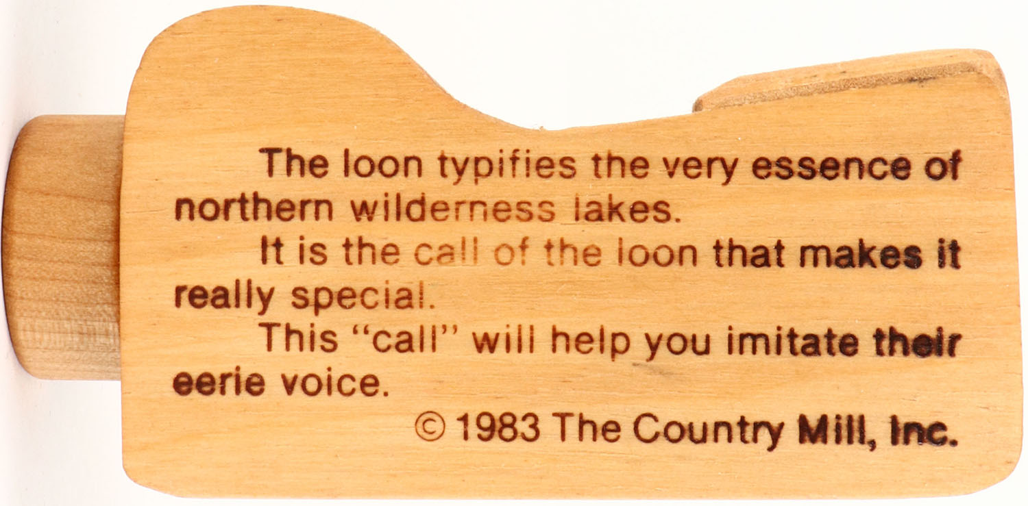 Country Mill Inc. ADJ. Loon Whistle, has message on one side & image of loons on the other. Grade: MINT - Value: 6 to 30