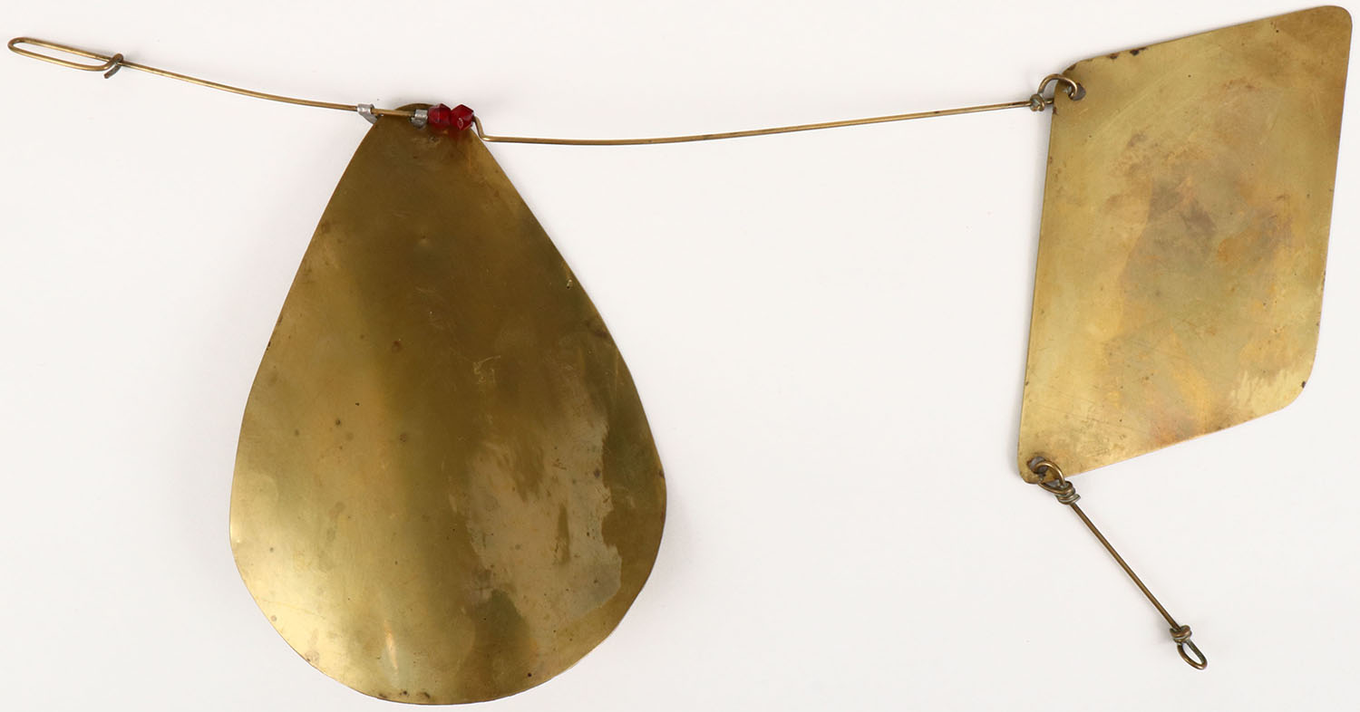 Unmarked brass large trolling spinner, 23'' long. Grade: Excellent - Value: 10 to 50