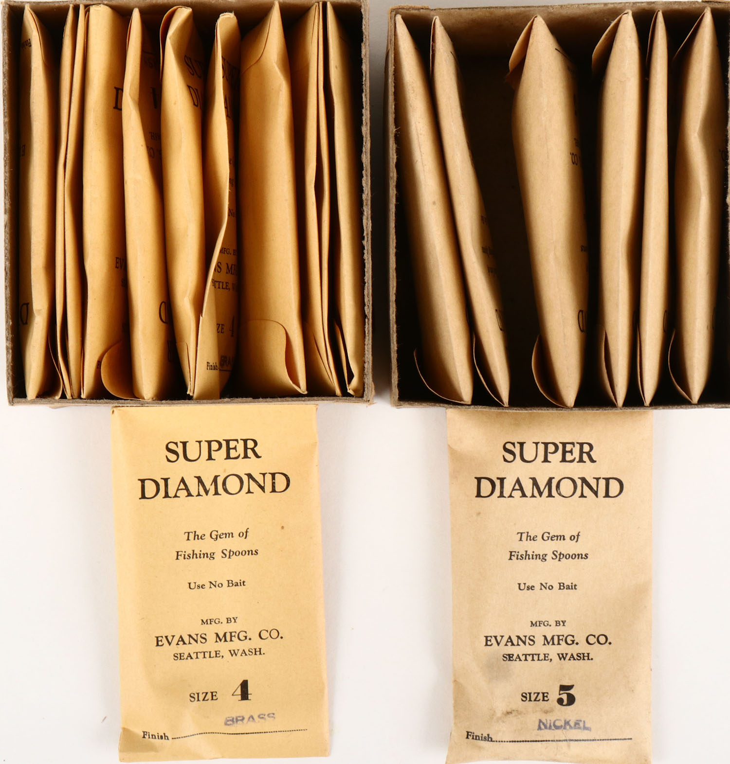 Lot of 2 near full cases of Super Diamond Trolling Spoons Size 4 & 5. Grade: Excellent - Value: 10 to 60