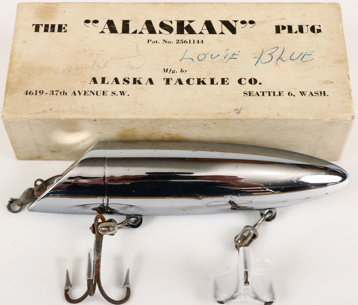 Alaskan Salmon Plug in the original box, in eyes, CHROME finish. Grade: Excellent ++ - Value: 10 to 30