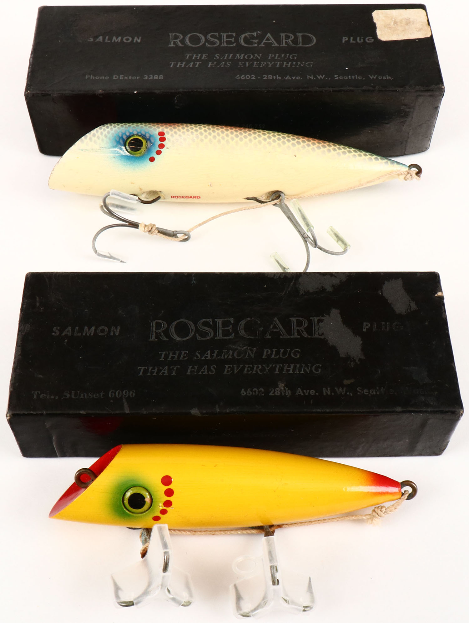 Lot of 2 Rosegard Salmon plugs in original boxes. Grade: Excellent - Value: 10 to 60