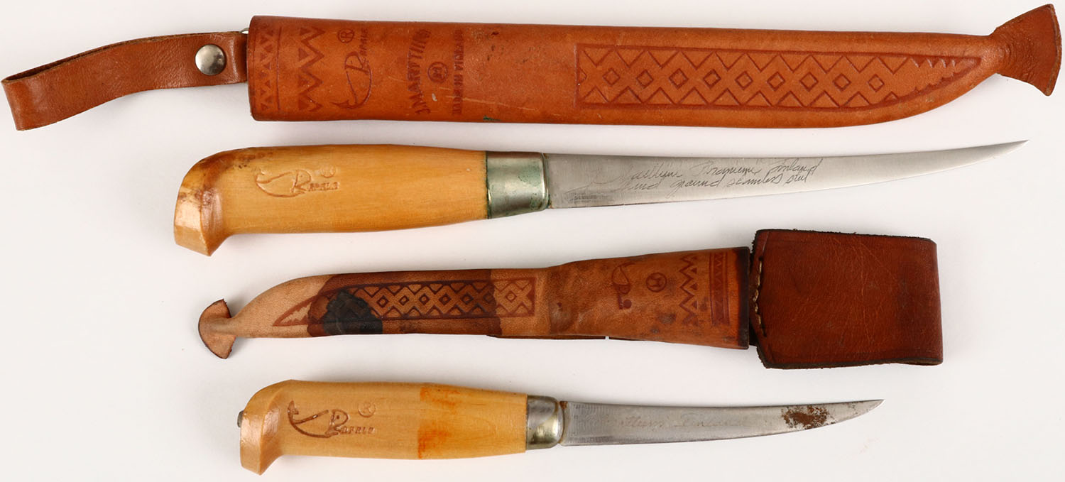 Lot of 2 Felt Knives with leather sheaths. Grade: Excellent - Value: 10 to 60