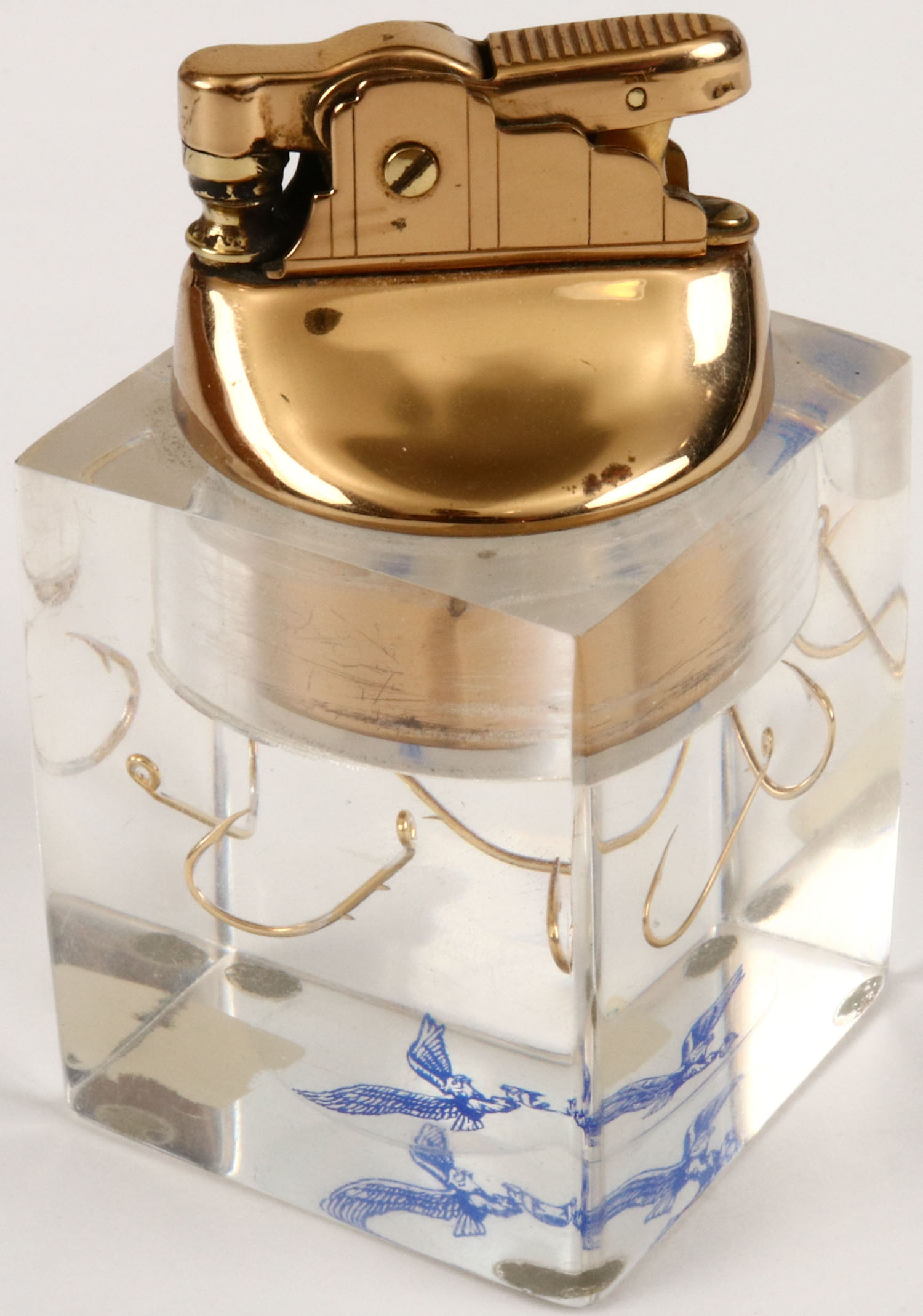 Lighter with 4 gold hooks suspended in air. Grade: Excellent ++ - Value: 6 to 30
