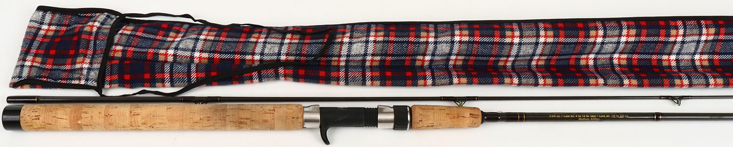 Lamiglas Series G 1000, Spinning Rod, G1218-CT, 7' 6'', 2pc., 3 3/4oz. line wt. 6-12lb test, lure wt. 1/8 - 5/8oz., medium action, has cloth bag. Grade: Excellent - Value: 20 to 200