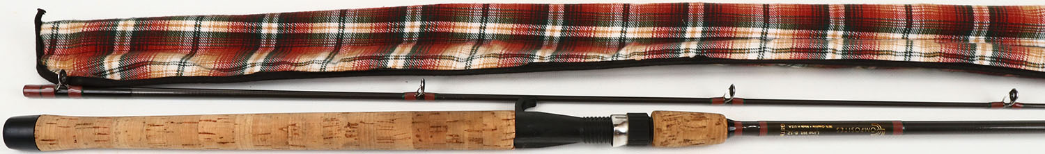 Loomis Composites GTS864, Spinning Rod, 8' 6'', 2pc., line wt. 8-12lb test, lure wt. 3/8 - 3/4oz., has cloth bag. Grade: Excellent - Value: 20 to 200