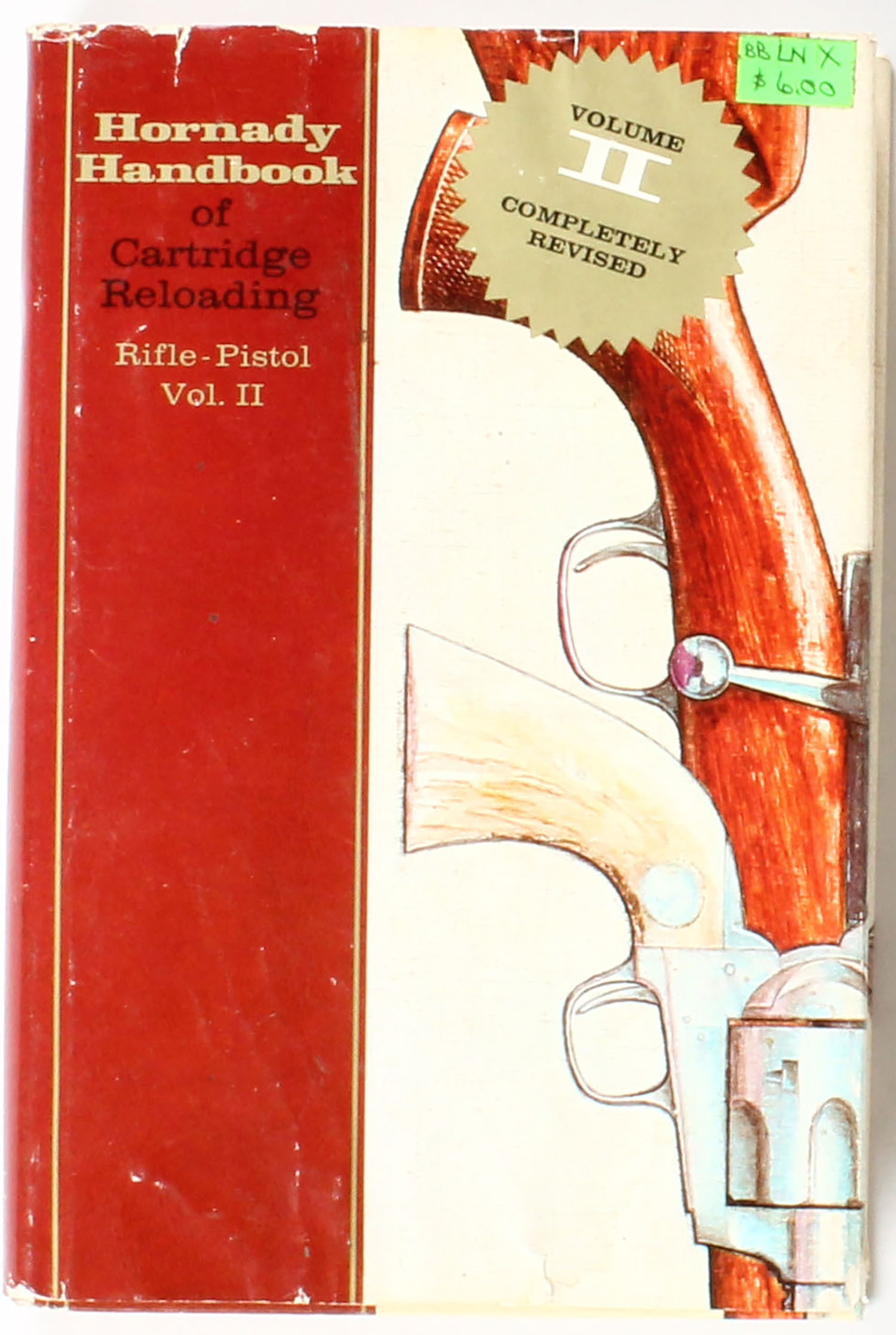 Hornady Handbook of Cartridge Reloading Rifle-Pistol Volume II, 5 1/2'' x 8 1/2''. 512 pages, pages clean, binding tight, hardcover very good, dustjacket has tears in it. Grade: Very Good + - Value: 2 to 50