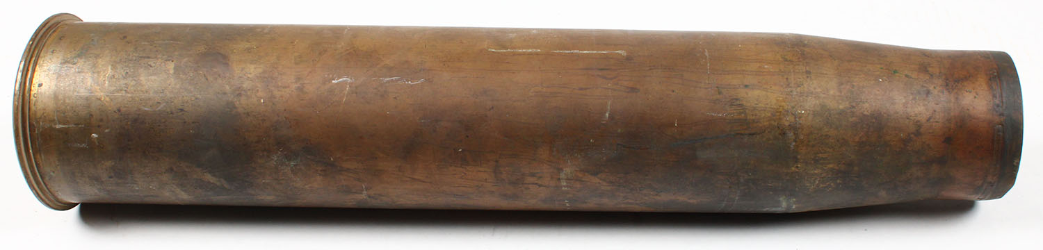 Military shell, H/S ''90MM-M108'', ''90 MM T24'', ''LOT-FA-1-7'', ''1968'', ''AMM LOT IOP- 2-18'', ''CTG TP-T-M353A1'', ''M35 M54 M41'', ''MV 3000'', OAL- 23 3/4''. Grade: Very Good + - Value: 10 to 100