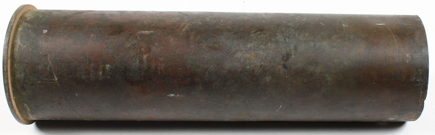 French, WW1 1913 Field Gun shell, H/S ''05L MLE1913'', ''MA.I 21L 18 D'', OAL- 15 3/8''. Grade: Very Good + - Value: 10 to 100