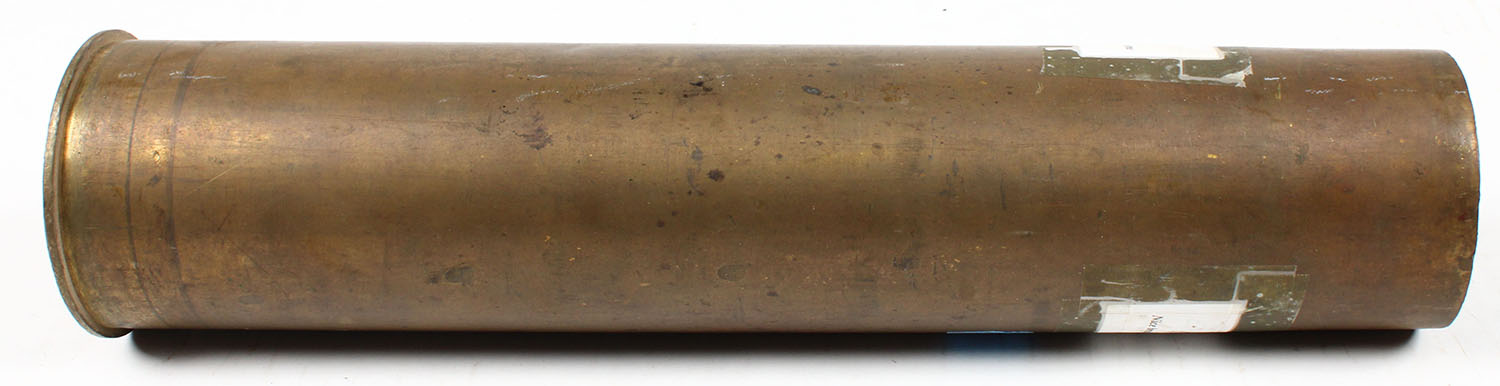 German Used WW2 Russian 76.2mm Fieldgun shell case, 76.2 x 385mmR, Cased Dated 1943, H/S ''711'', ''43'', ''3275'' in oval, OAL- 15''. Grade: Very Good + - Value: 10 to 100